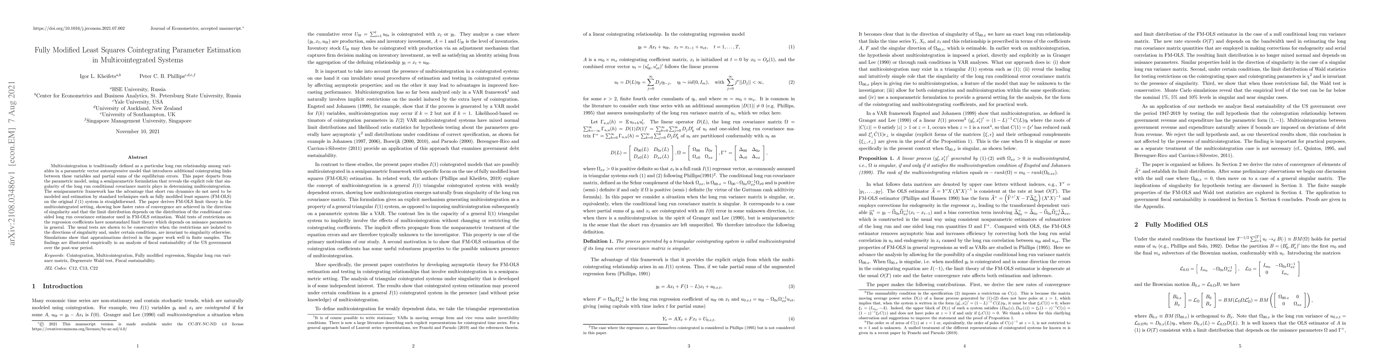 This paper proposes a semiparametric approach for estimating cointegrating parameters in multicointegrated systems using fully modified least squares (FM-OLS), highlighting faster convergence rates near singularity and nonstandard Wald test distributions. Empirically, it analyzes the fiscal sustainability of the US government post-war.