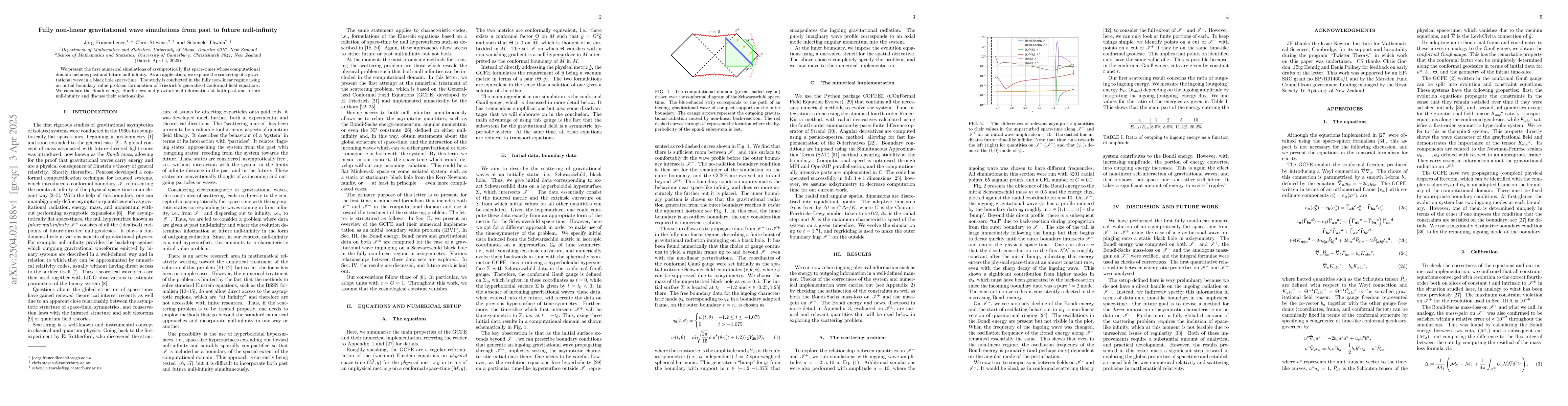 Introduction of a novel approach to simulate fully non-linear gravitational waves including past and future null-infinity using generalised conformal field equations.