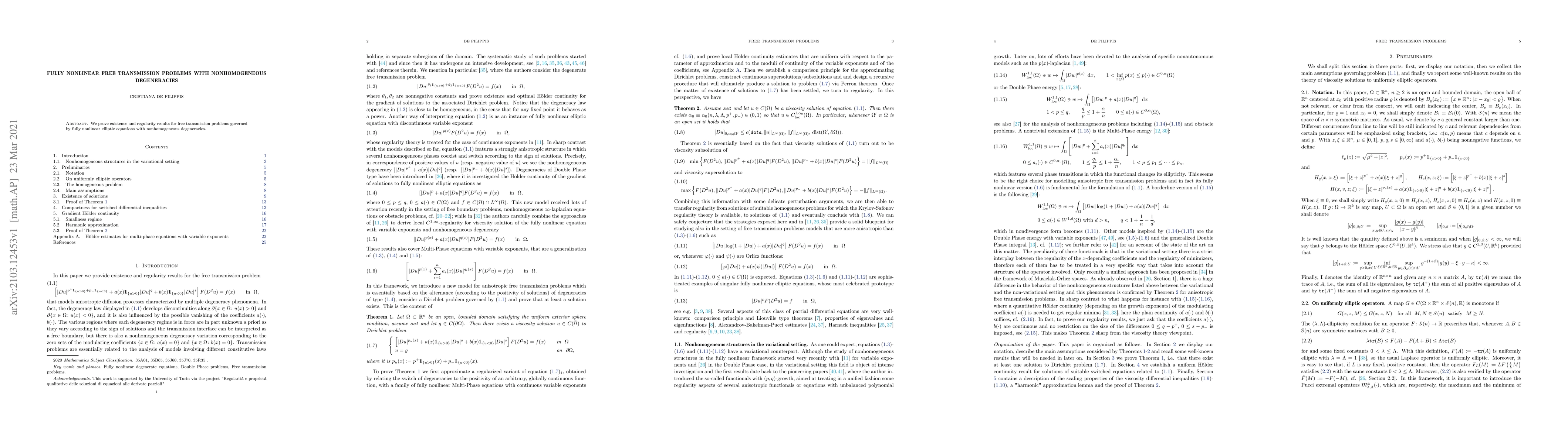 Researchers prove existence and regularity results for free transmission problems governed by fully nonlinear elliptic equations with nonhomogeneous degeneracies, shedding light on the solutions of such complex partial differential equations.