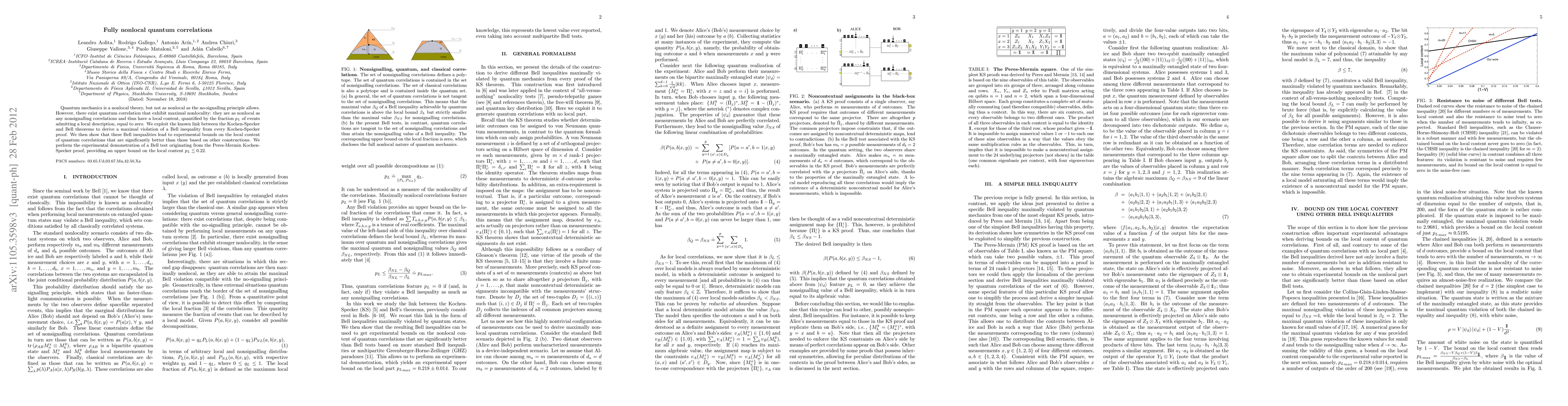 This paper explores fully nonlocal quantum correlations that exhibit maximal nonlocality, demonstrating that they have zero local content. The authors derive Bell inequalities from Kochen-Specker proofs and show these lead to superior experimental bounds on the local content, achieving an upper bound of $p_L\lesssim 0.22$ through a Bell test.