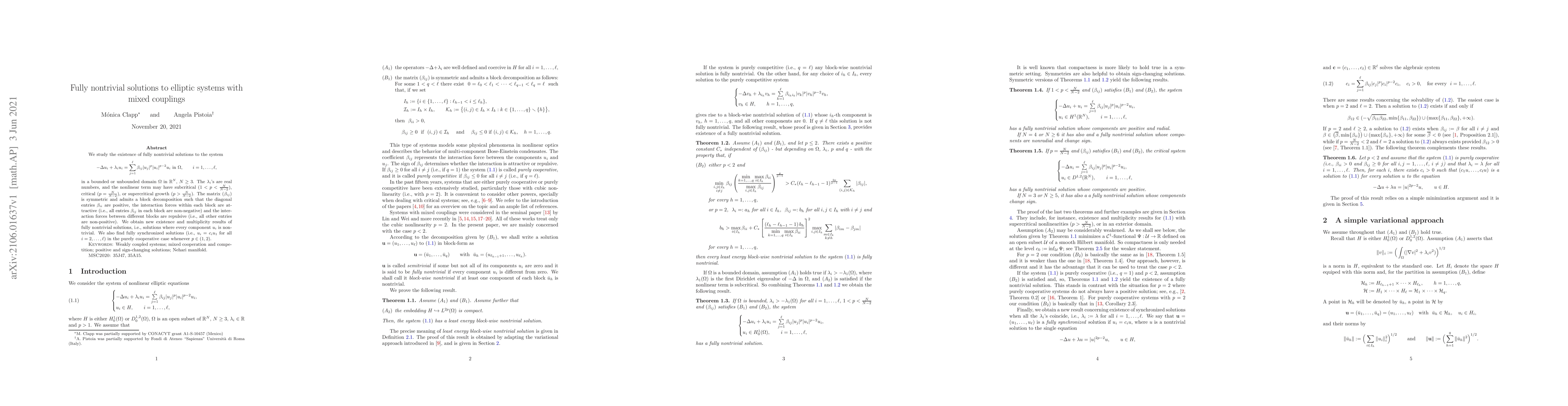 We study the existence of fully nontrivial solutions to the system $$-\Delta u_i+ \lambda_iu_i = \sum\limits_{j=1}^\ell \beta_{ij}|u_j|^p|u_i|^{p-2}u_i\ \hbox{in}\ \Omega, \qquad i=1,\ldots,\ell,$$ in a bounded or unbounded domain $\Omega$ in $\mathbb R^N,$ $N\ge 3$. The $\lambda_i$'s are real numbers, and the nonlinear term may have subcritical ($1