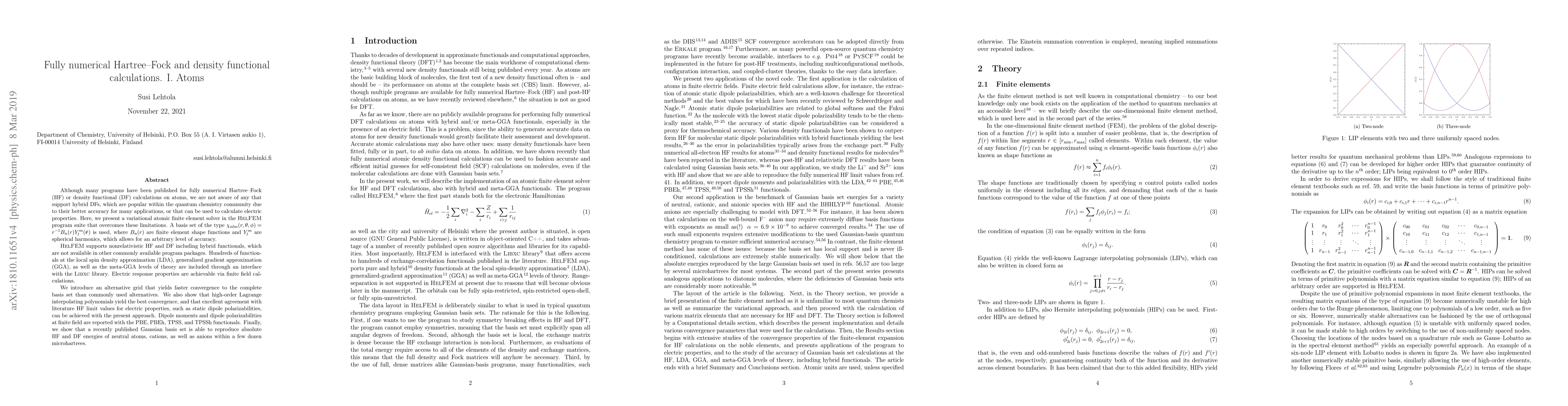This paper introduces HelFEM, a variational atomic finite element solver supporting fully numerical Hartree-Fock and density functional calculations, including hybrid functionals and electric properties. It demonstrates faster convergence and high accuracy in calculating electric response properties.