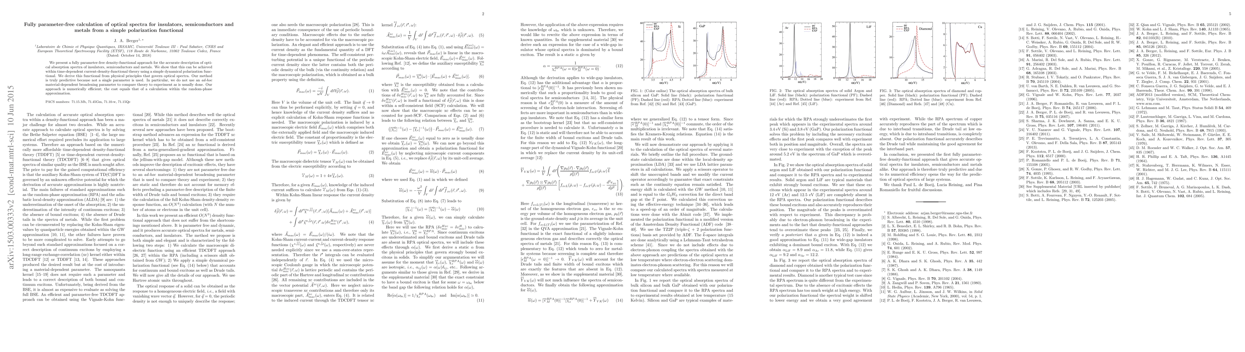 We present a fully parameter-free density-functional approach for the accurate description of optical absorption spectra of insulators, semiconductors and metals. We show that this can be achieved within time-dependent current-density-functional theory using a simple dynamical polarization functional. We derive this functional from physical principles that govern optical spectra. Our method is truly predictive because not a single parameter is used. In particular, we do not use an \textit{ad-hoc} material-dependent broadening parameter to compare theory to experiment as is usually done. Our approach is numerically efficient; the cost equals that of a calculation within the random-phase approximation.