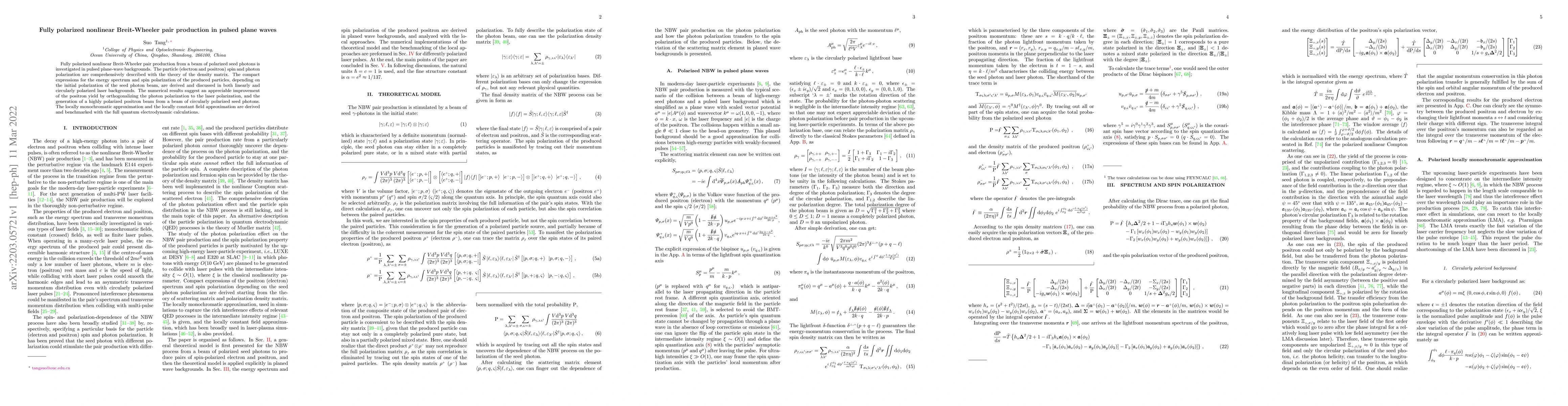 Fully polarized nonlinear Breit-Wheeler pair production from a beam of polarized seed photons is investigated in pulsed plane-wave backgrounds. The particle (electron and positron) spin and photon polarization are comprehensively described with the theory of the density matrix. The compact expressions for the energy spectrum and spin polarization of the produced particles, depending on the initial polarization of the seed photon beam, are derived and discussed in both linearly and circularly polarized laser backgrounds. The numerical results suggest an appreciable improvement of the positron yield by orthogonalizing the photon polarization to the laser polarization, and the generation of a highly polarized positron beam from a beam of circularly polarized seed photons. The locally monochromatic approximation and the locally constant field approximation are derived and benchmarked with the full quantum electrodynamic calculations.