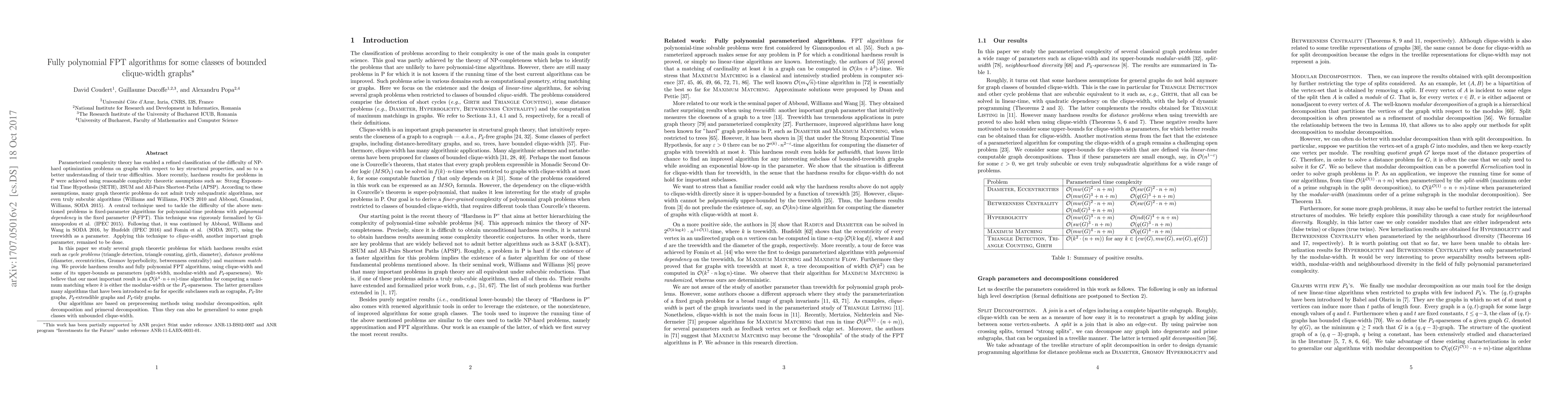 Parameterized complexity theory has enabled a refined classification of the difficulty of NP-hard optimization problems on graphs with respect to key structural properties, and so to a better understanding of their true difficulties. More recently, hardness results for problems in P were achieved using reasonable complexity theoretic assumptions such as: Strong Exponential Time Hypothesis (SETH), 3SUM and All-Pairs Shortest-Paths (APSP). According to these assumptions, many graph theoretic problems do not admit truly subquadratic algorithms, nor even truly subcubic algorithms (Williams and Williams, FOCS 2010 and Abboud, Grandoni, Williams, SODA 2015). A central technique used to tackle the difficulty of the above mentioned problems is fixed-parameter algorithms for polynomial-time problems with polynomial dependency in the fixed parameter (P-FPT). This technique was introduced by Abboud, Williams and Wang in SODA 2016 and continued by Husfeldt (IPEC 2016) and Fomin et al. (SODA 2017), using the treewidth as a parameter. Applying this technique to clique-width, another important graph parameter, remained to be done. In this paper we study several graph theoretic problems for which hardness results exist such as cycle problems (triangle detection, triangle counting, girth, diameter), distance problems (diameter, eccentricities, Gromov hyperbolicity, betweenness centrality) and maximum matching. We provide hardness results and fully polynomial FPT algorithms, using clique-width and some of its upper-bounds as parameters (split-width, modular-width and $P\_4$-sparseness). We believe that our most important result is an ${\cal O}(k^4 \cdot n + m)$-time algorithm for computing a maximum matching where $k$ is either the modular-width or the $P\_4$-sparseness. The latter generalizes many algorithms that have been introduced so far for specific subclasses such as cographs, $P\_4$-lite graphs, $P\_4$-extendible graphs and $P\_4$-tidy graphs. Our algorithms are based on preprocessing methods using modular decomposition, split decomposition and primeval decomposition. Thus they can also be generalized to some graph classes with unbounded clique-width.