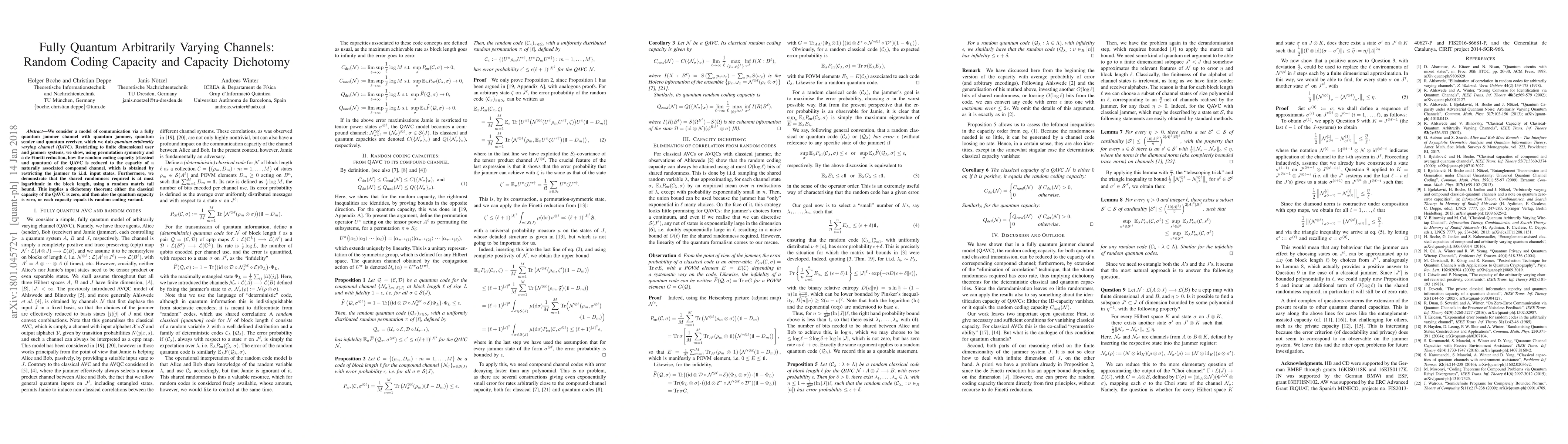 This paper studies a fully quantum jammer channel, showing that its random coding capacity can be reduced to a compound channel with i.i.d. input states, implying either zero classical or quantum capacity, or equal capacities.