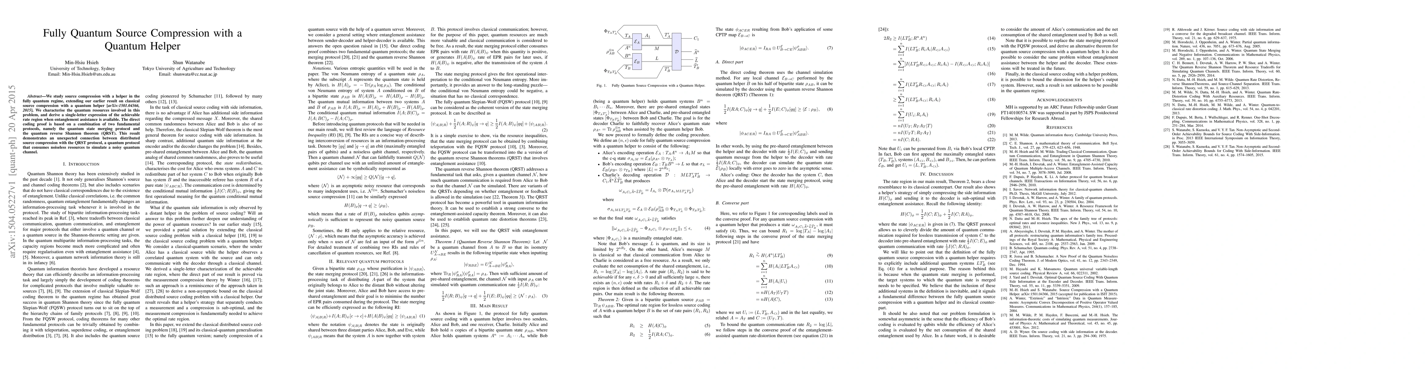 Researchers developed a method for quantum source compression with a helper, leveraging entanglement assistance to achieve a rate region that connects classical and quantum protocols, demonstrating an unexpected link between two seemingly distinct approaches.