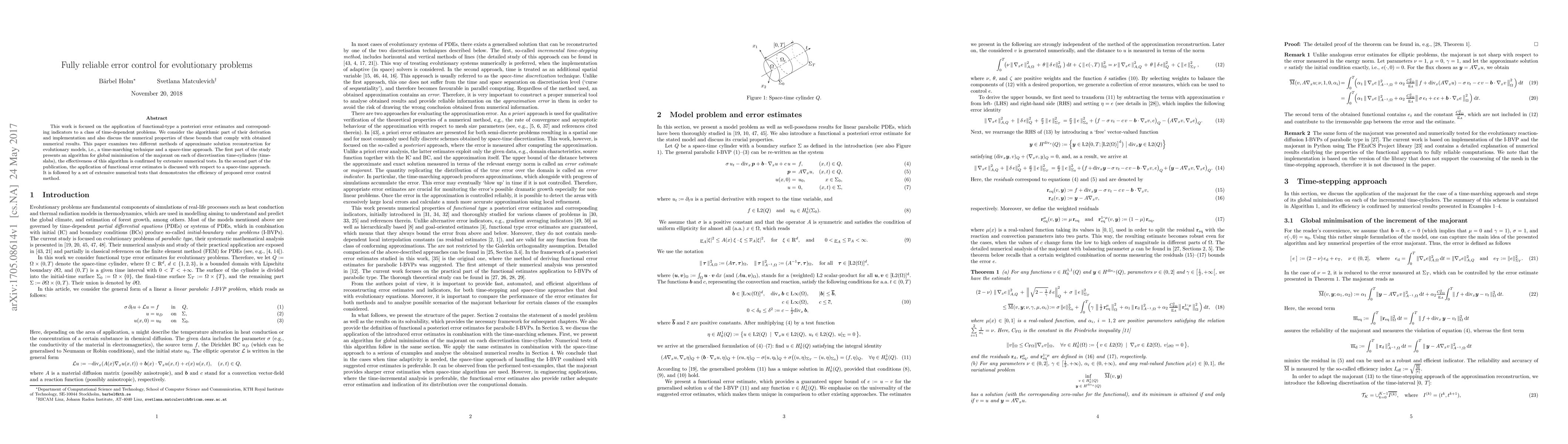 This work is focused on the application of functional-type a posteriori error estimates and corresponding indicators to a class of time-dependent problems. We consider the algorithmic part of their derivation and implementation and also discuss the numerical properties of these bounds that comply with obtained numerical results. This paper examines two different methods of approximate solution reconstruction for evolutionary models, i.e., a time-marching technique and a space-time approach. The first part of the study presents an algorithm for global minimization of the majorant on each of discretization time-cylinders (time-slabs), the effectiveness of this algorithm is confirmed by extensive numerical tests. In the second part of the publication, the application of functional error estimates is discussed with respect to a space-time approach. It is followed by a set of extensive numerical tests that demonstrate the efficiency of proposed error control method.