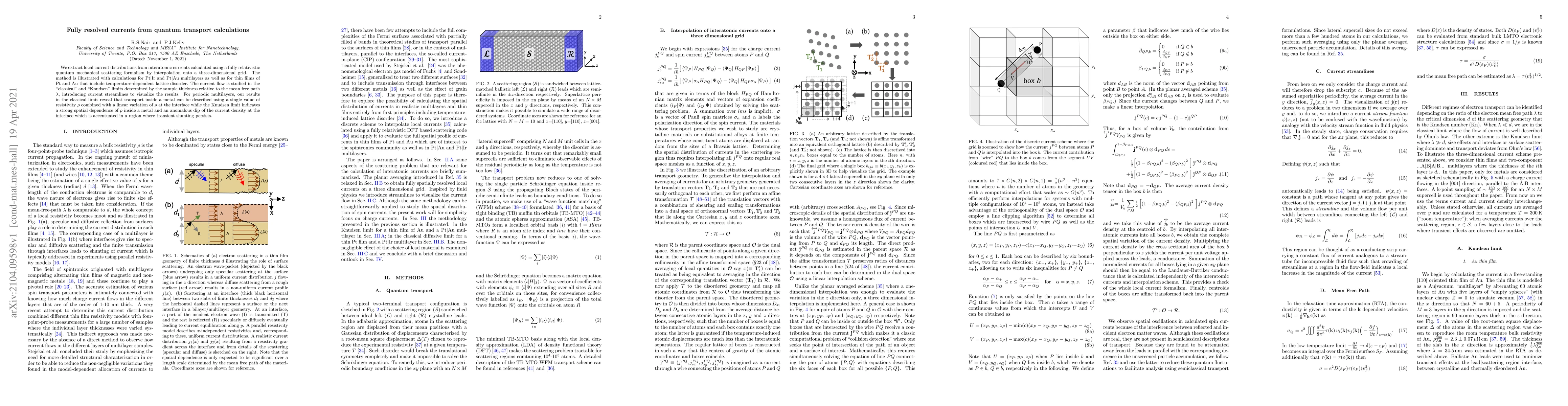 We extract local current distributions from interatomic currents calculated using a fully relativistic quantum mechanical scattering formalism by interpolation onto a three-dimensional grid. The method is illustrated with calculations for Pt$|$Ir and Pt$|$Au multilayers as well as for thin films of Pt and Au that include temperature-dependent lattice disorder. The current flow is studied in the "classical" and "Knudsen" limits determined by the sample thickness relative to the mean free path $\lambda$, introducing current streamlines to visualize the results. For periodic multilayers, our results in the classical limit reveal that transport inside a metal can be described using a single value of resistivity $\rho$ combined with a linear variation of $\rho$ at the interface while the Knudsen limit indicates a strong spatial dependence of $\rho$ inside a metal and an anomalous dip of the current density at the interface which is accentuated in a region where transient shunting persists.