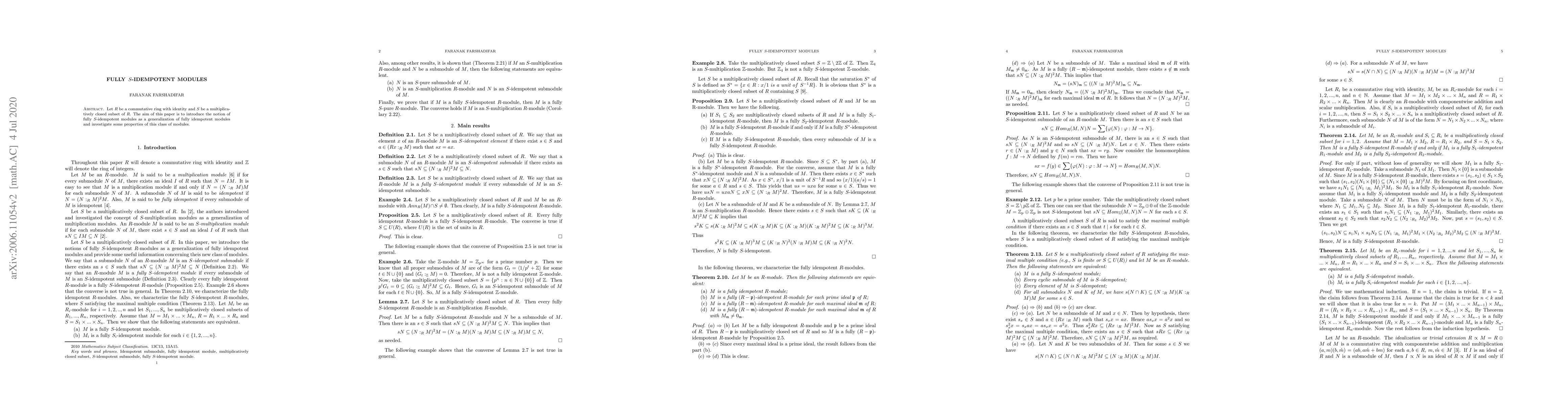 Let R be a commutative ring with identity and S be a multiplicatively closed subset of R. The aim of this paper is to introduce the notion of fully S-idempotent modules as a generalization of fully idempotent modules and investigate some properties of this class of modules.