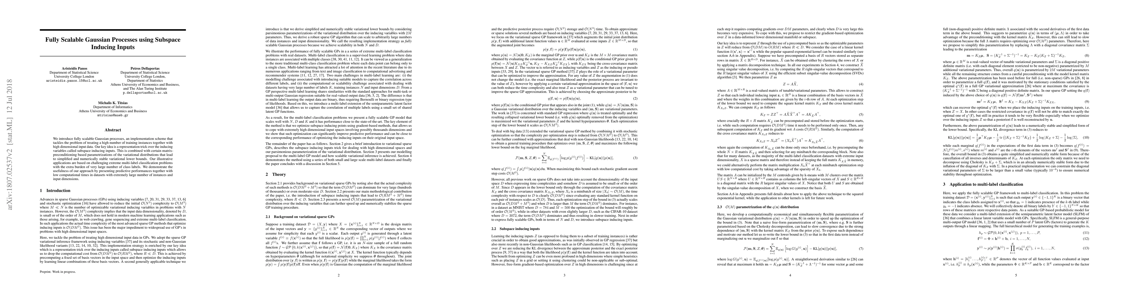 This paper presents a fully scalable Gaussian process method using subspace inducing inputs to handle large datasets and high-dimensional data efficiently. The approach combines inducing variable representation with matrix-preconditioning for stable variational lower bounds, demonstrating effectiveness in multi-label classification tasks with many labels.