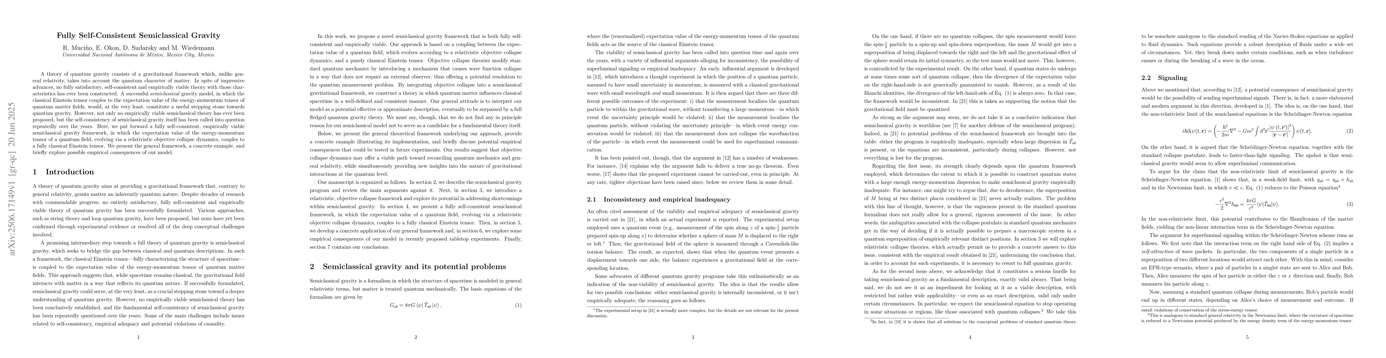 This paper proposes a fully self-consistent semiclassical gravity framework, where quantum matter field's expectation value couples with a classical Einstein tensor, offering a potential step towards quantum gravity. It presents the general framework, a concrete example, and explores possible empirical implications.