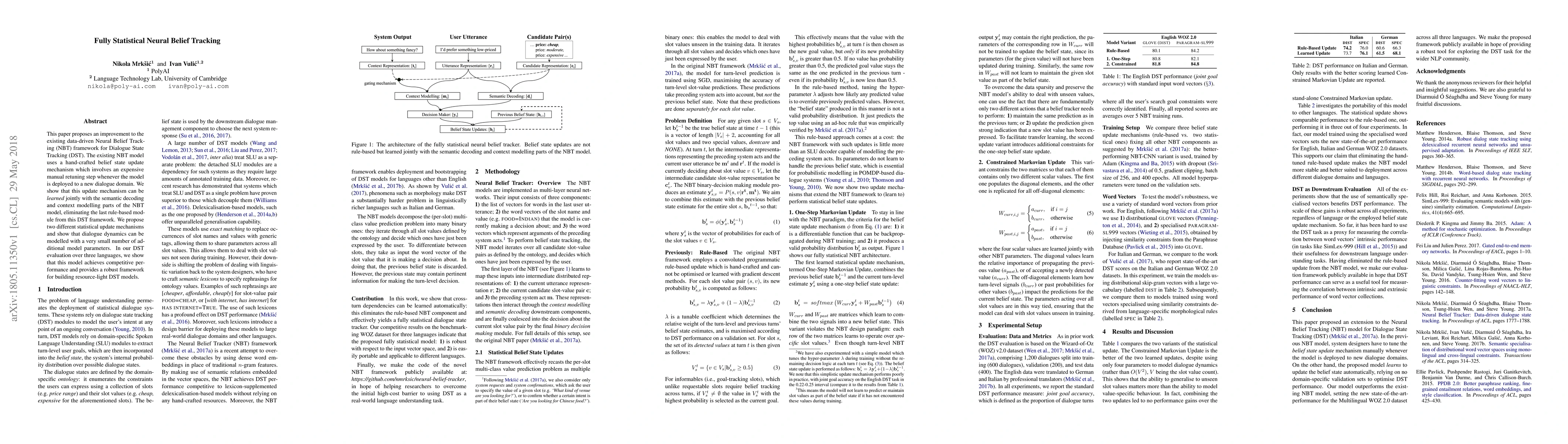 This paper introduces a fully statistical Neural Belief Tracking framework that eliminates the need for manual retuning, achieving competitive performance in Dialogue State Tracking with minimal additional parameters. The new statistical update mechanisms provide a robust, resource-light solution for DST across multiple languages.