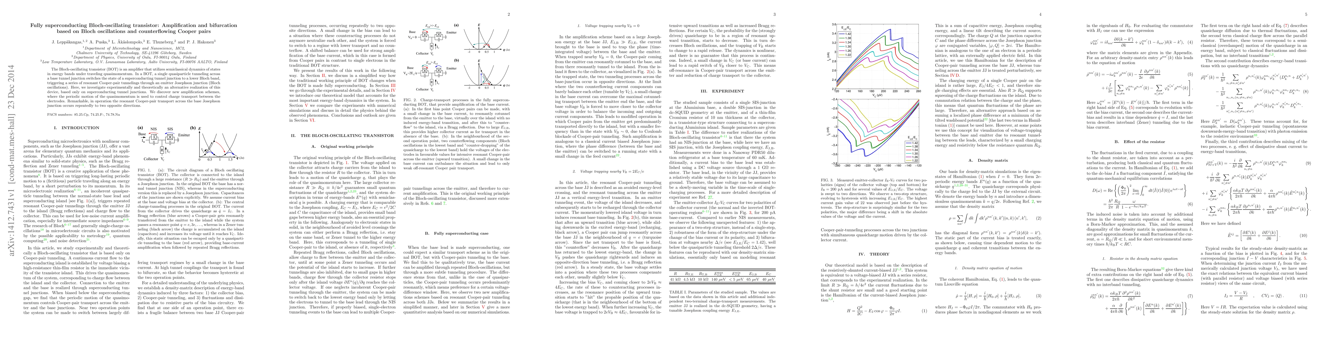 This paper explores a fully superconducting Bloch-oscillating transistor (BOT) that leverages Bloch oscillations and counterflowing Cooper pairs for amplification and bifurcation. The device employs superconducting tunnel junctions to control charge transport through resonant Cooper-pair tunneling, revealing new amplification schemes based on the periodic motion of quasimomentum.
