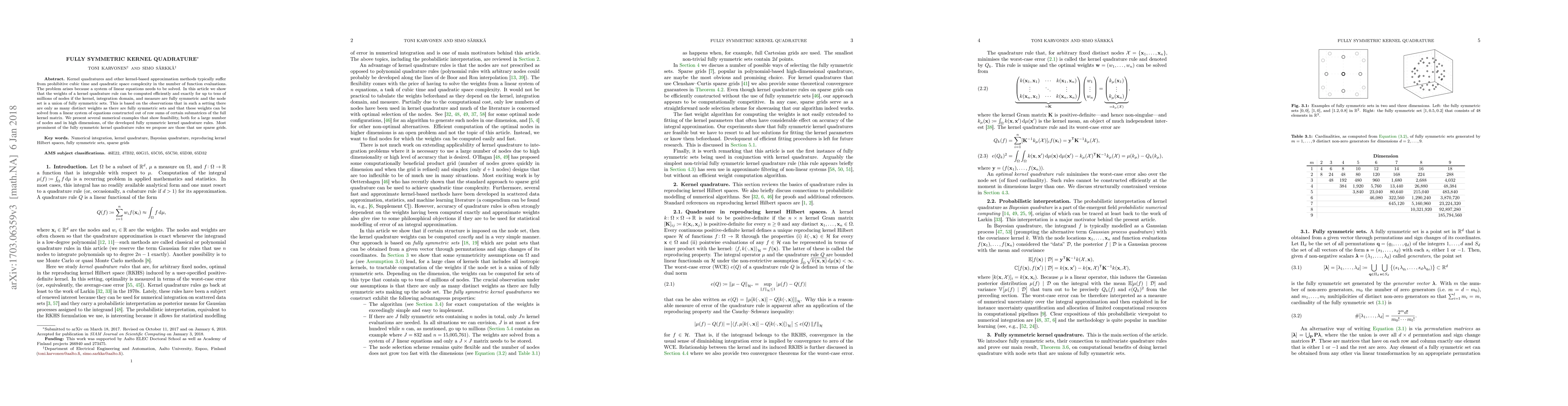 This paper proposes an efficient method for computing fully symmetric kernel quadrature rules, which significantly reduces computational complexity to manageable levels for large datasets. The method leverages the symmetry properties of the kernel, integration domain, and measure to solve for distinct weights from a simplified linear system, demonstrating feasibility in high dimensions and large node sets.