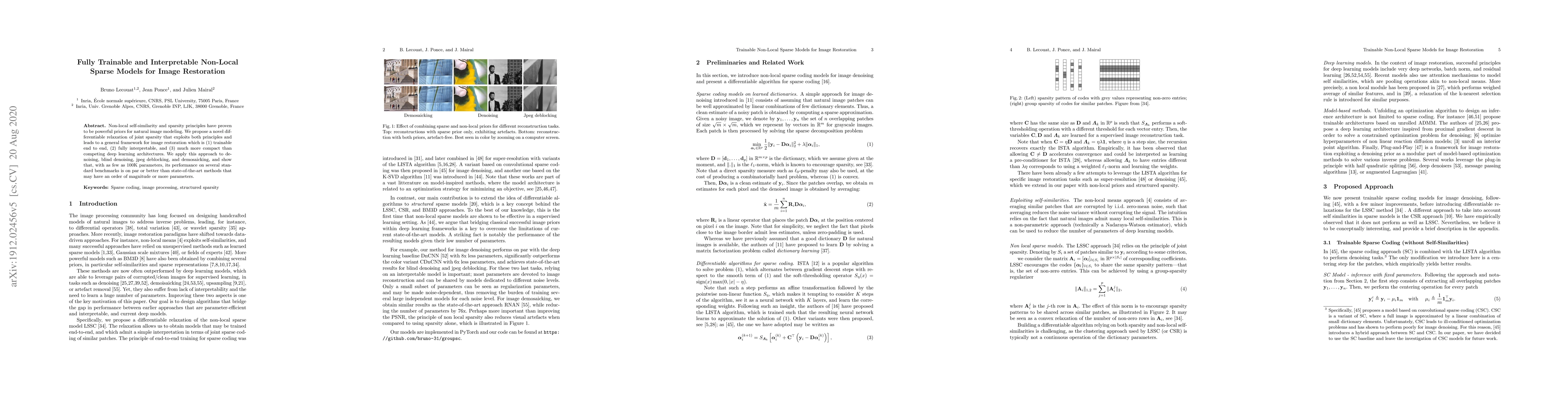 A new approach to image restoration uses non-local self-similarity and sparsity principles to create a compact, fully interpretable, and trainable model that outperforms state-of-the-art methods with significantly fewer parameters.
