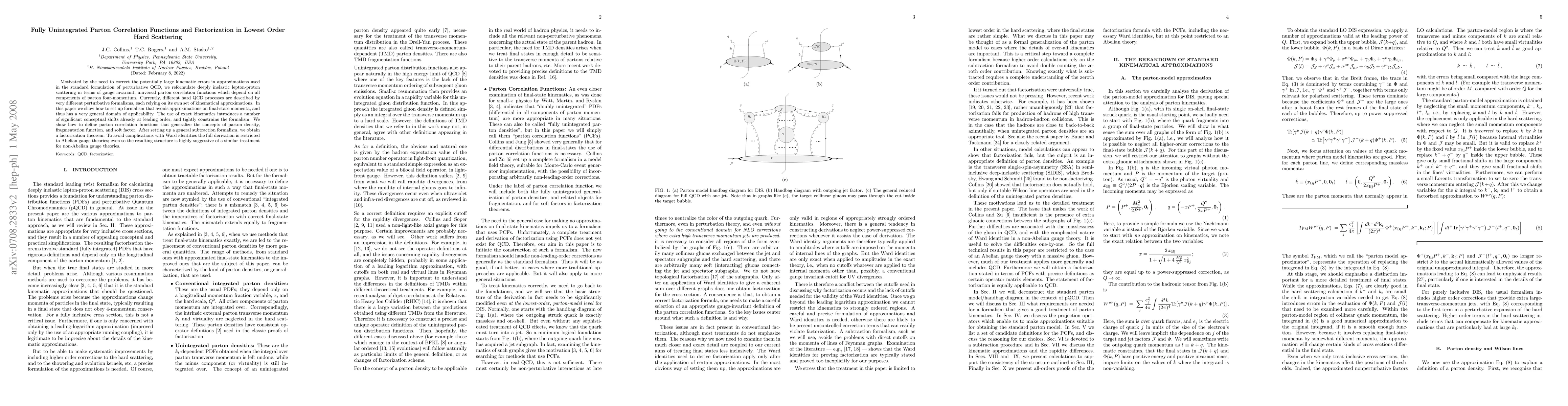 Motivated by the need to correct the potentially large kinematic errors in approximations used in the standard formulation of perturbative QCD, we reformulate deeply inelastic lepton-proton scattering in terms of gauge invariant, universal parton correlation functions which depend on all components of parton four-momentum. Currently, different hard QCD processes are described by very different perturbative formalisms, each relying on its own set of kinematical approximations. In this paper we show how to set up formalism that avoids approximations on final-state momenta, and thus has a very general domain of applicability. The use of exact kinematics introduces a number of significant conceptual shifts already at leading order, and tightly constrains the formalism. We show how to define parton correlation functions that generalize the concepts of parton density, fragmentation function, and soft factor. After setting up a general subtraction formalism, we obtain a factorization theorem. To avoid complications with Ward identities the full derivation is restricted to abelian gauge theories; even so the resulting structure is highly suggestive of a similar treatment for non-abelian gauge theories.