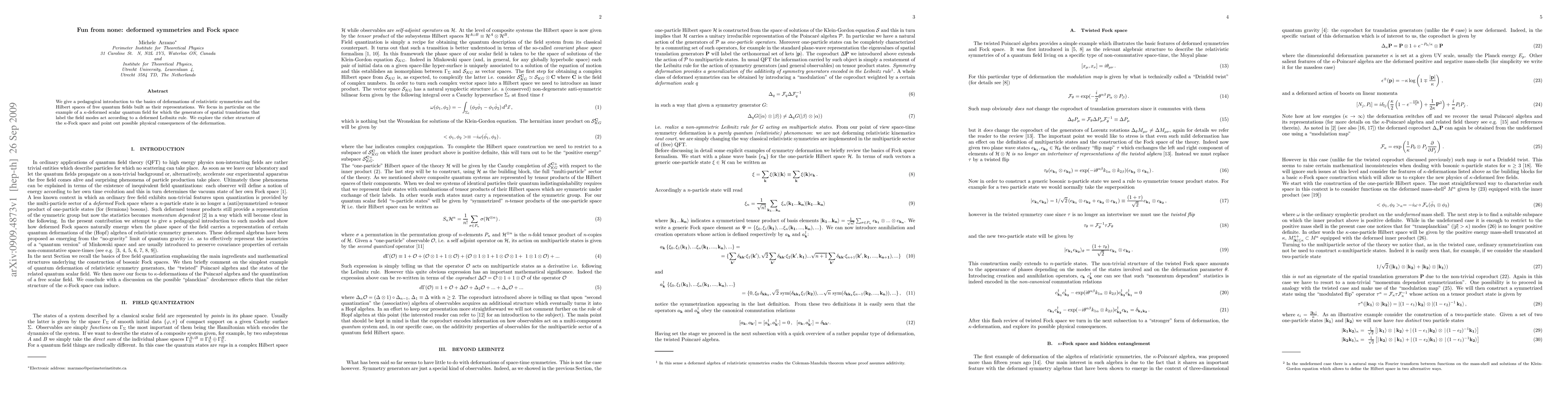 We give a pedagogical introduction to the basics of deformations of relativistic symmetries and the Hilbert spaces of free quantum fields built as their representations. We focus in particular on the example of a $\kappa$-deformed scalar quantum field for which the generators of spatial translations that label the field modes act according to a deformed Leibnitz rule. We explore the richer structure of the $\kappa$-Fock space and point out possible physical consequences of the deformation.
