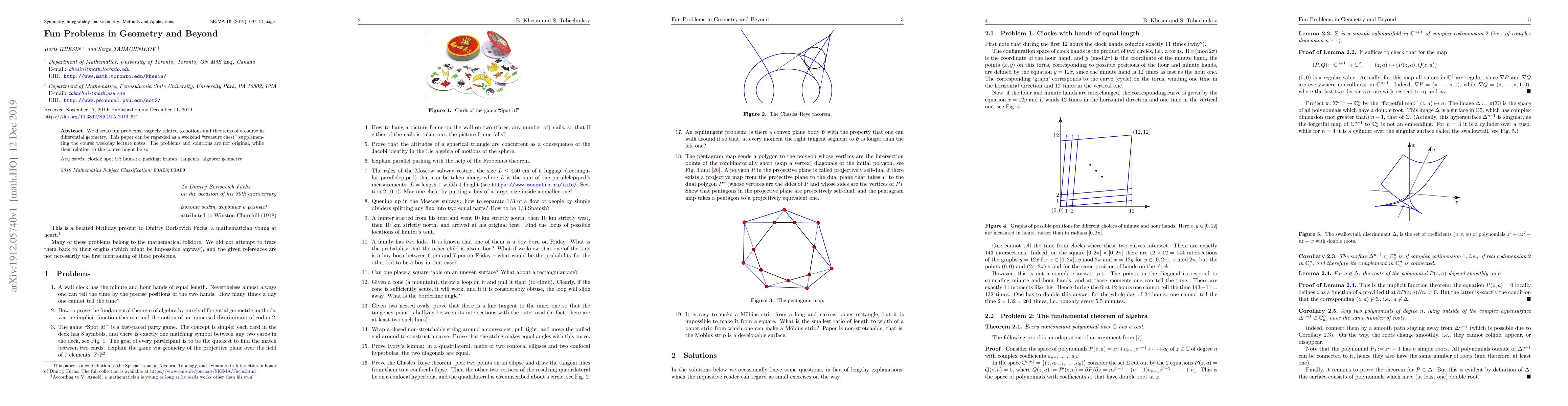 We discuss fun problems, vaguely related to notions and theorems of a course in differential geometry. This paper can be regarded as a weekend "treasure chest" supplementing the course weekday lecture notes. The problems and solutions are not original, while their relation to the course might be so.