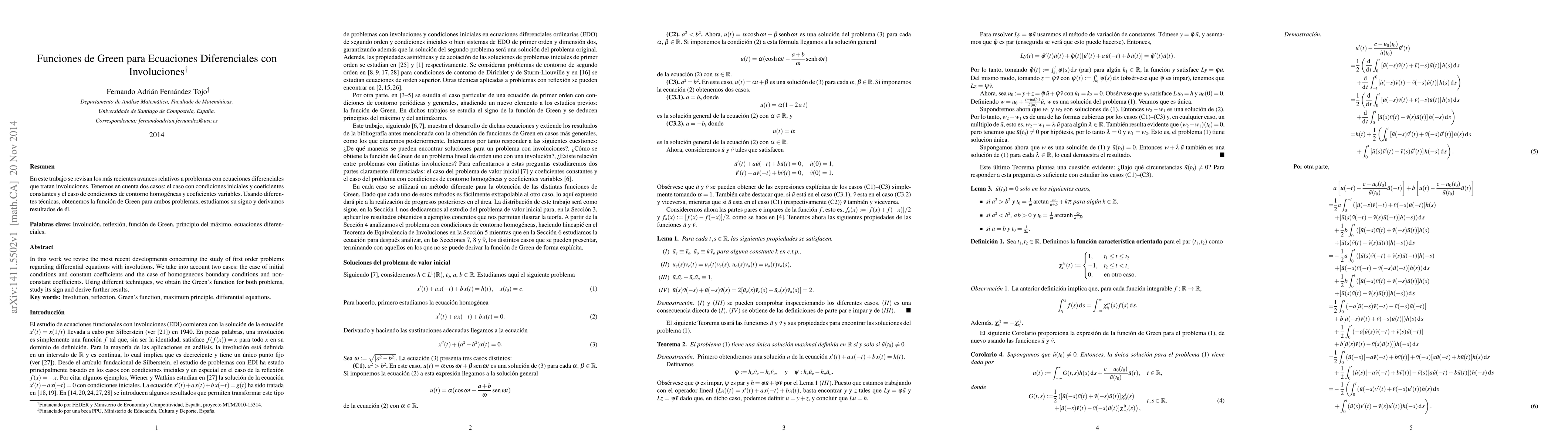 In this work we revise the most recent developments concerning the study of first order problems regarding differential equations with involutions. We take into account two cases: the case of initial conditions and constant coefficients and the case of homogeneous boundary conditions and non-constant coefficients. Using different techniques, we obtain the Green's function for both problems, study its sign and derive further results.