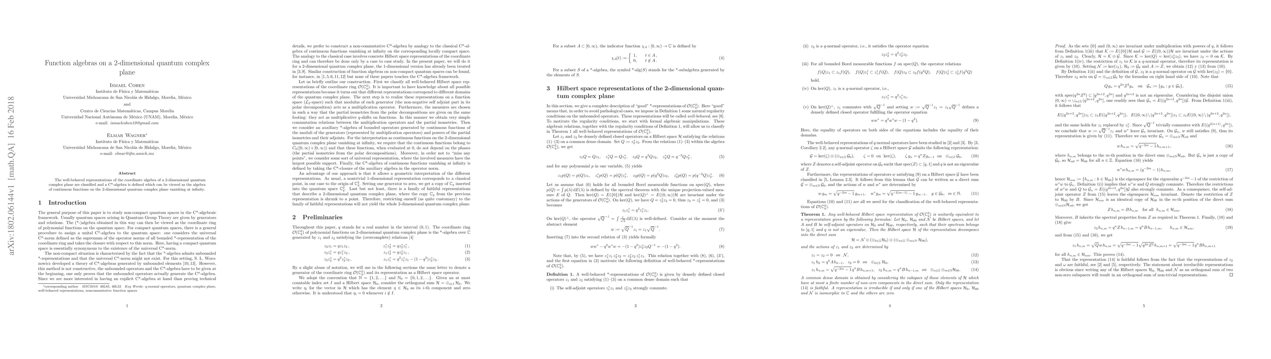 The well-behaved representations of the coordinate algebra of a 2-dimensional quantum complex plane are classified and a C*-algebra is defined which can be viewed as the algebra of continuous functions on the 2-dimensional quantum complex plane vanishing at infinity.
