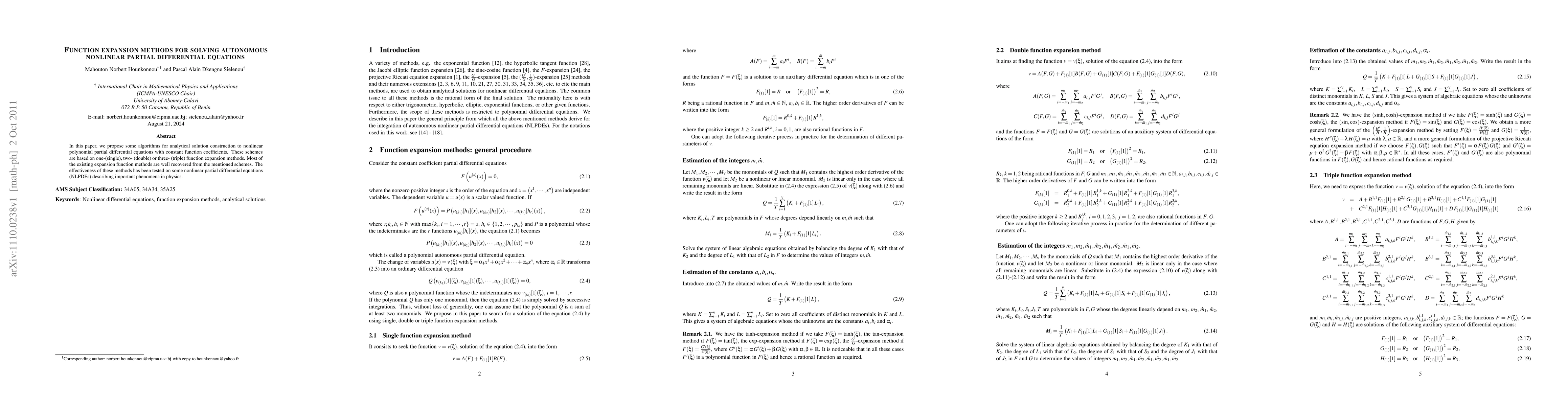 This paper introduces algorithms for constructing analytical solutions to nonlinear polynomial partial differential equations using one-, two-, or three-function expansion methods. The proposed schemes are shown to encompass existing expansion function methods and have been validated through applications to significant physical phenomena.