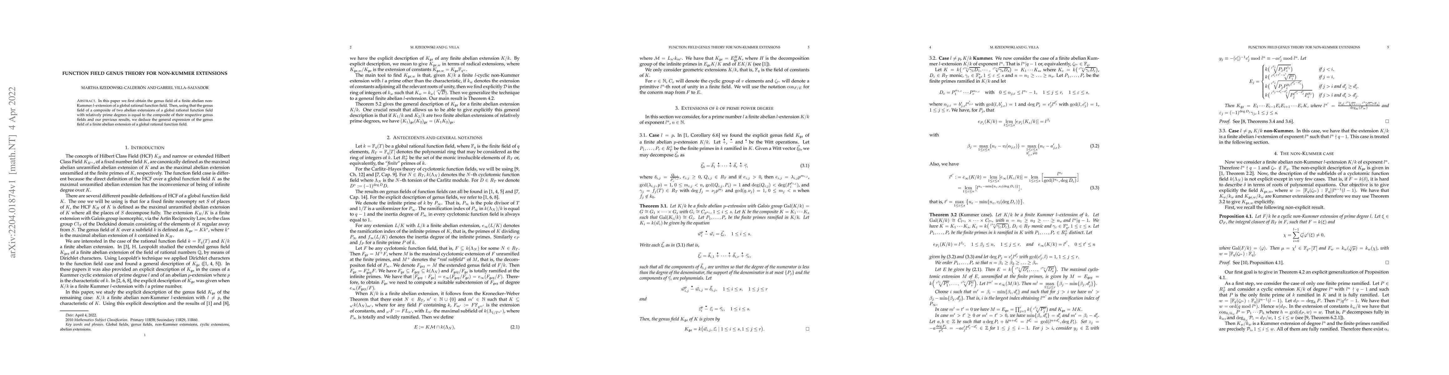 This paper determines the genus field for finite abelian non-Kummer $l$-extensions of global rational function fields and derives a general expression for the genus field of any finite abelian extension using properties of composite extensions.