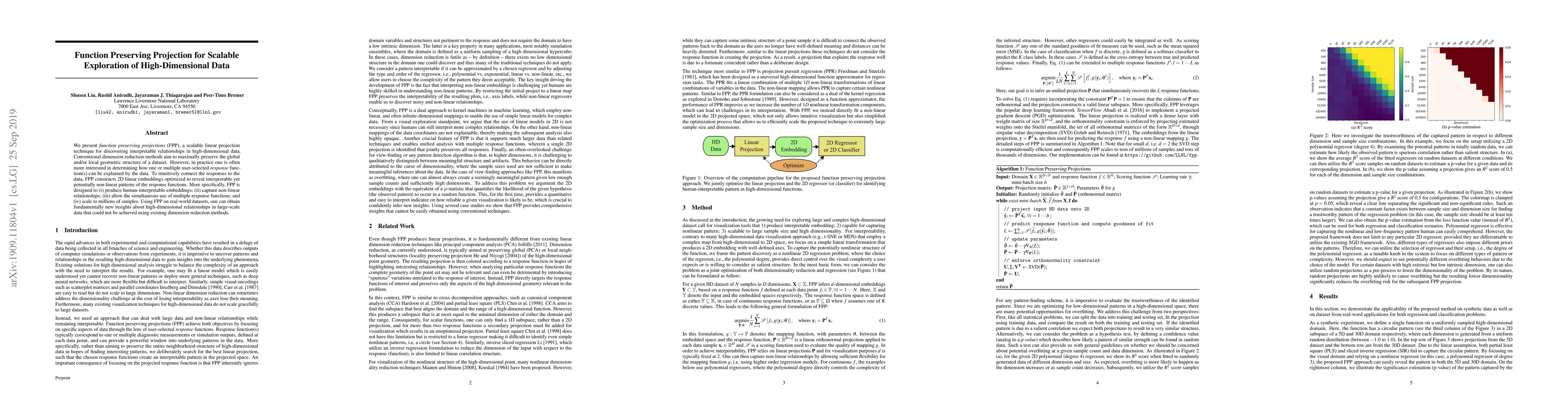 A new method called function preserving projection (FPP) is introduced to discover interpretable relationships in high-dimensional data, capturing non-linear patterns and allowing simultaneous use of multiple response functions.