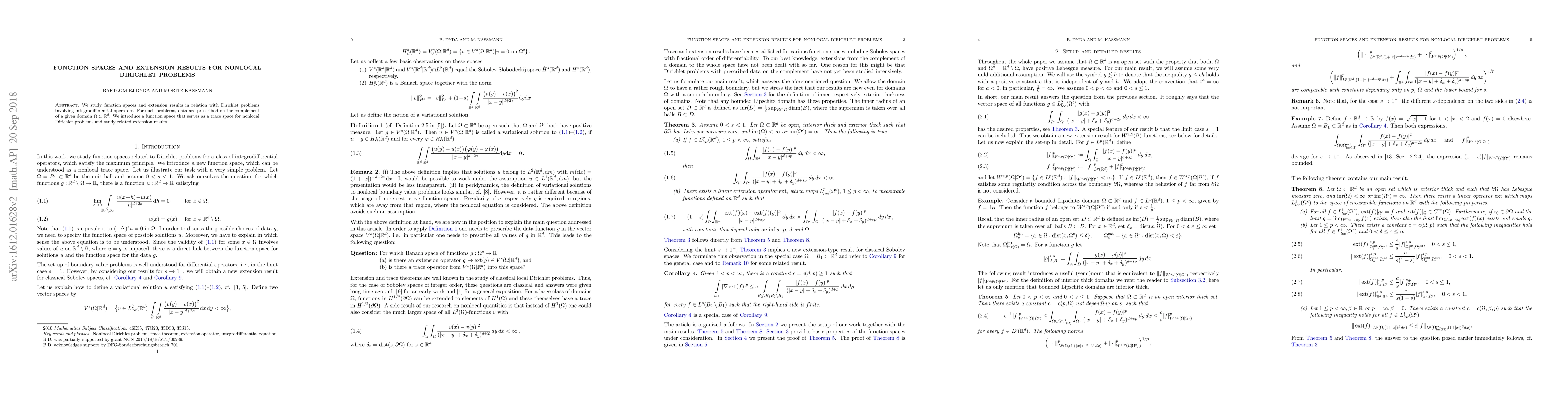This paper investigates function spaces and extension techniques for nonlocal Dirichlet problems governed by integrodifferential operators, introducing a trace space for these problems and exploring associated extension results.