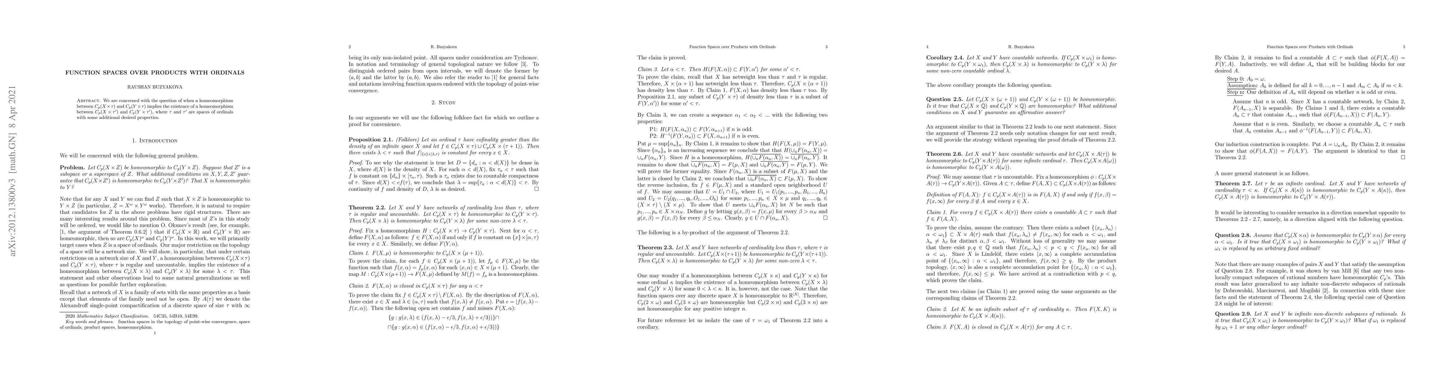 We are concerned with the question of when a homeomorphism between $C_p(X\times \tau)$ and $C_p(Y\times \tau)$ implies the existence of a homeomorphism between $C_p(X\times \tau')$ and $C_p(Y\times \tau')$, where $\tau$ and $\tau'$ are spaces of ordinals with some additional desired properties.