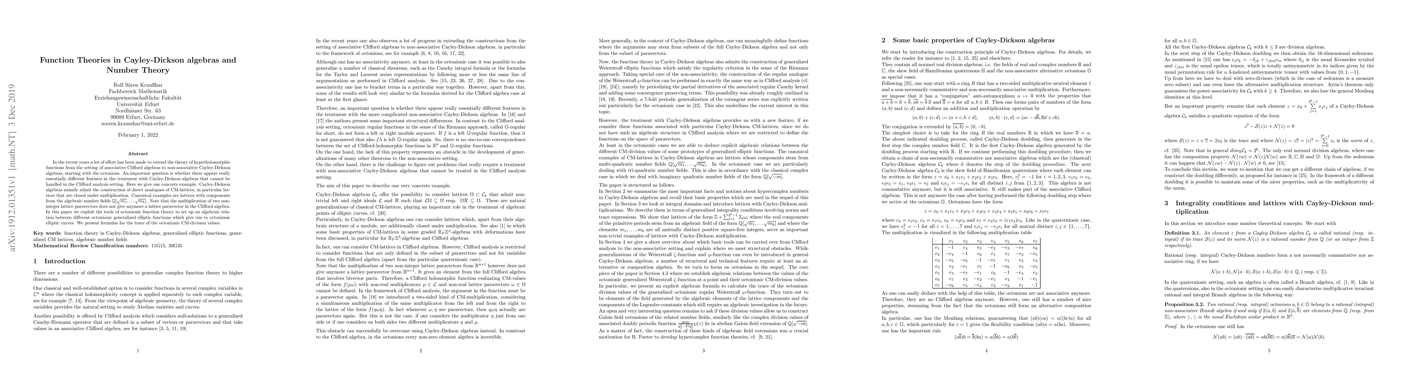 In the recent years a lot of effort has been made to extend the theory of hyperholomorphic functions from the setting of associative Clifford algebras to non-associative Cayley-Dickson algebras, starting with the octonions. An important question is whether there appear really essentially different features in the treatment with Cayley-Dickson algebras that cannot be handled in the Clifford analysis setting. Here we give one concrete example. Cayley-Dickson algebras namely admit the construction of direct analogues of CM-lattices, in particular lattices that are closed under multiplication. Canonical examples are lattices with components from the algebraic number fields $\mathbb{Q}[\sqrt{m_1},\ldots\sqrt{m_k}]$. Note that the multiplication of two non-integer lattice paravectors does not give anymore a lattice paravector in the Clifford algebra. In this paper we exploit the tools of octonionic function theory to set up an algebraic relation between different octonionic generalized elliptic functions which give rise to octonionic elliptic curves. We present formulas for the trace of the octonionic CM-division values.
