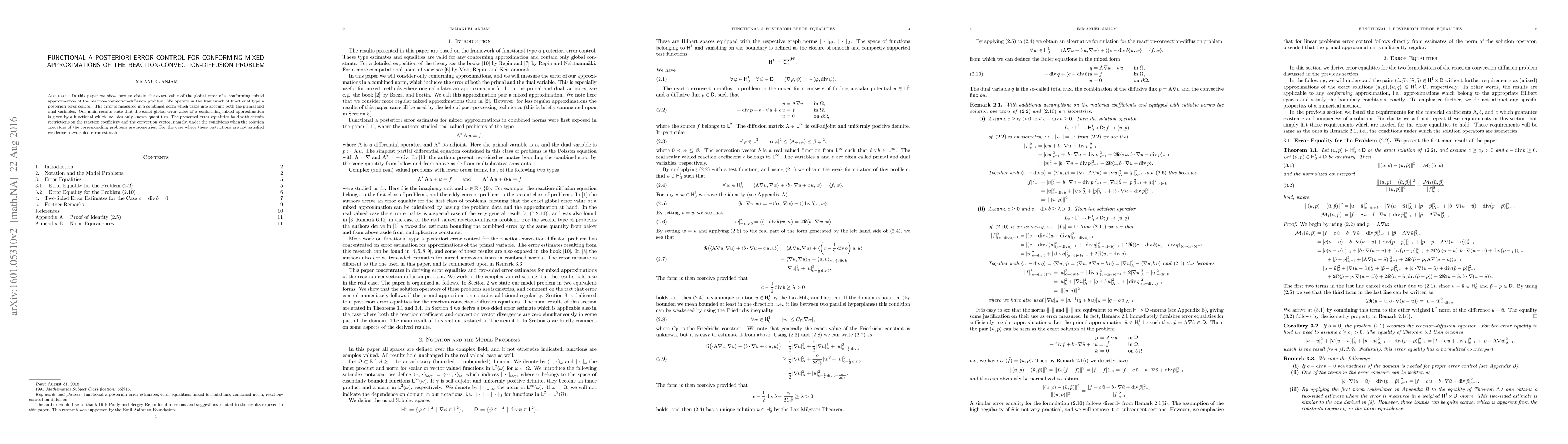 This paper develops a functional a posteriori error control method for conforming mixed approximations of the reaction-convection-diffusion problem, providing exact global error values under specific conditions. When conditions are not met, it offers a two-sided error estimate.