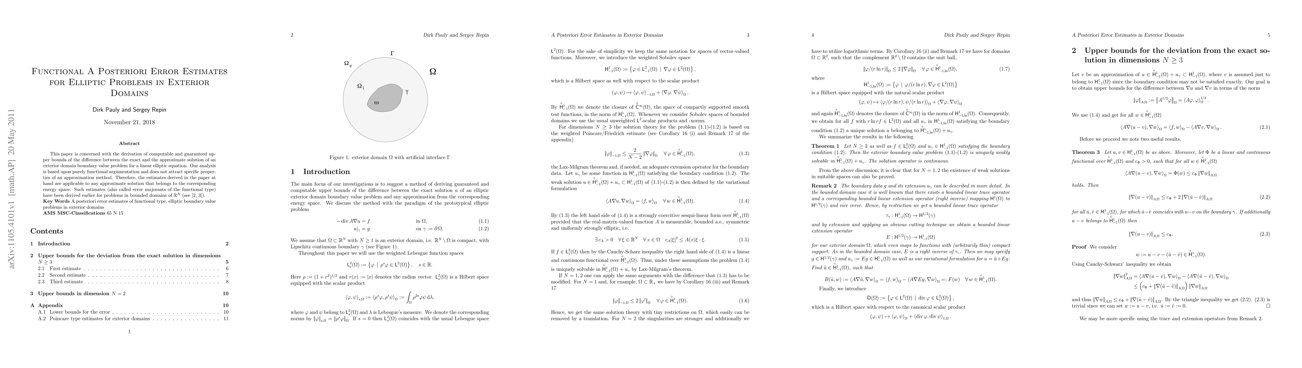 This paper develops a-posteriori error estimates for elliptic problems in exterior domains, providing computable upper bounds for the difference between exact and approximate solutions. These functional estimates are method-independent and applicable to any approximate solution in the corresponding energy space.