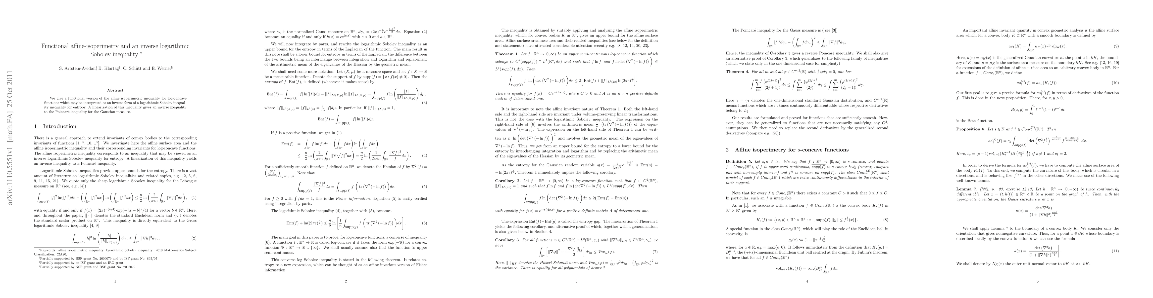 Summary: This paper presents a functional affine isoperimetric inequality for log-concave functions, interpreted as an inverse logarithmic Sobolev inequality for entropy, and derives an inverse Poincaré inequality for the Gaussian measure through its linearization.