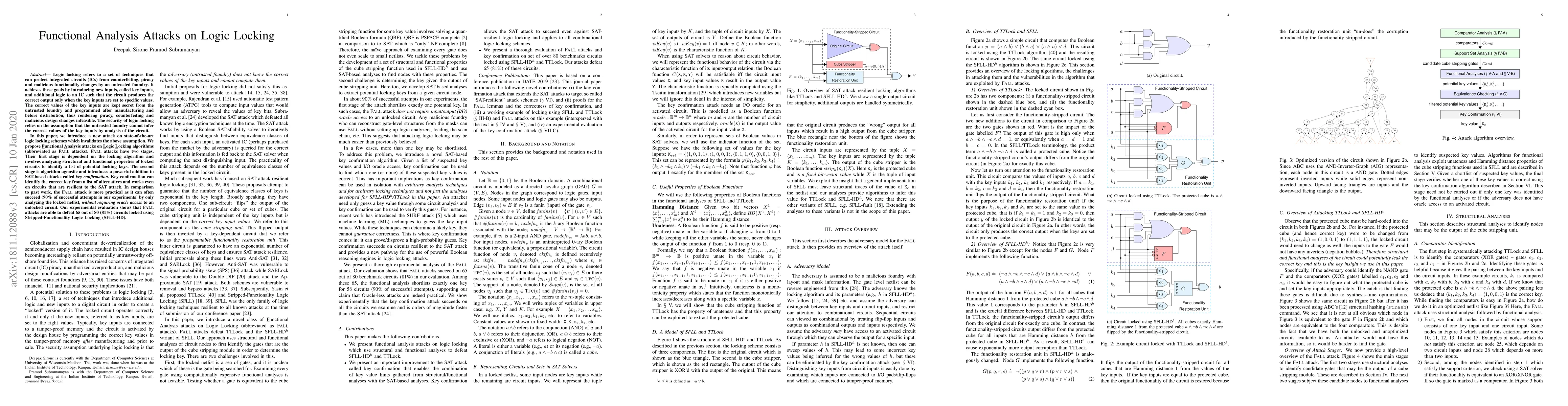 This paper introduces Functional Analysis attacks on Logic Locking (FALL attacks), which can identify potential locking keys by analyzing circuit properties and confirm the correct key through a SAT-based method. Experiments show FALL attacks successfully defeat 81% of circuits locked with Stripped-Functionality Logic Locking, often without needing access to an unlocked circuit.