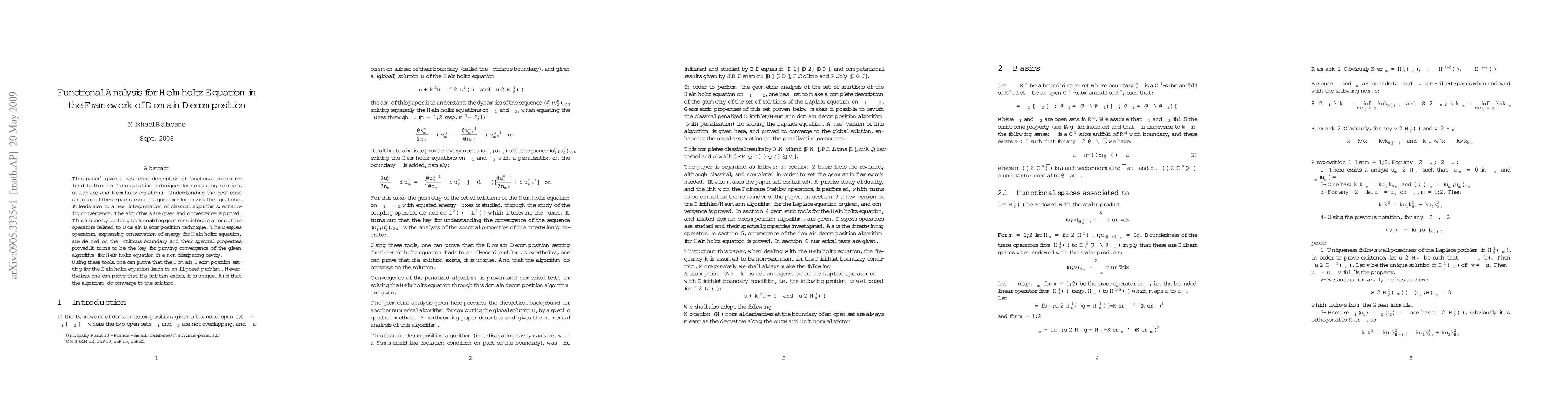 This paper develops geometric functional spaces for Domain Decomposition methods to solve Helmholtz equations, proving algorithm convergence and uniqueness of solutions despite the ill-posed nature of the problem. Numerical tests validate the proposed approach.