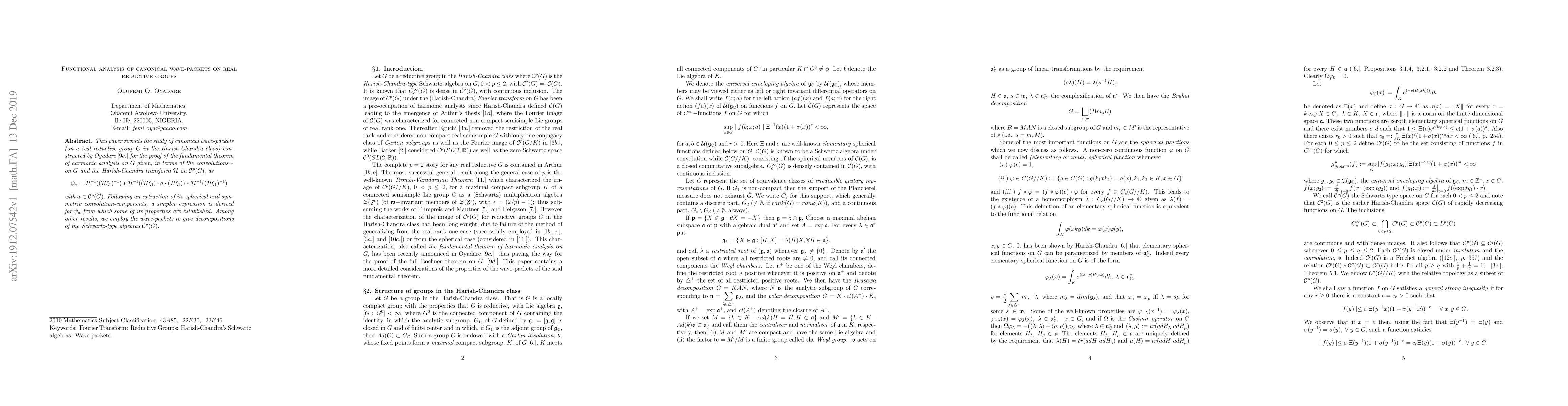 This paper analyzes canonical wave-packets on real reductive groups, building on previous work by Oyadare, and proves decompositions of Schwartz-type algebras through these wave-packets.