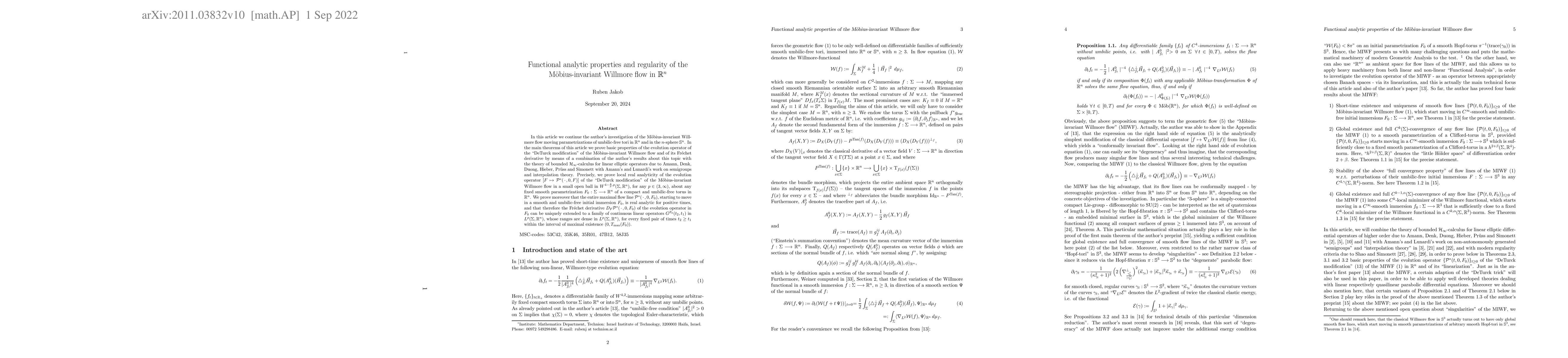 In this article we continue the author's investigation of the M\"obius-invariant Willmore flow moving parametrizations of umbilic-free tori in $\mathbb{R}^n$ and in the $n$-sphere $\mathbb{S}^n$. In the main theorems of this article we prove basic properties of the evolution operator of the "DeTurck modification" of the M\"obius-invariant Willmore flow and of its Fr\'echet derivative by means of a combination of the author's results about this topic with the theory of "bounded $\mathcal{H}_{\infty}$-calculus" for linear elliptic operators due to Amann, Denk, Duong, Hieber, Pr\"uss and Simonett, and with Amann's and Lunardi's work on semigroups and interpolation theory. Precisely, we prove local real analyticity of the evolution operator $[F\mapsto \mathcal{P}^*(\,\cdot\,,0,F)]$ of the "DeTurck modification" of the M\"obius-invariant Willmore flow in a small open ball in $W^{4-\frac{4}{p},p}(\Sigma,\mathbb{R}^n)$, for any $p\in (3,\infty)$, about any fixed smooth parametrization $F_0:\Sigma \longrightarrow \mathbb{R}^n$ of a compact and umbilic-free torus in $\mathbb{R}^n$. We prove moreover that the entire maximal flow line $\mathcal{P}^*(\,\cdot\,,0,F_0)$, starting to move in a smooth and umbilic-free initial immersion $F_0$, is real analytic for positive times, and that therefore the Fr\'echet derivative $D_{F}\mathcal{P}^*(\,\cdot\,,0,F_0)$ of the evolution operator in $F_0$ can be uniquely extended to a family of continuous linear operators $G^{F_0}(t_2,t_1)$ in $L^p(\Sigma,\mathbb{R}^n)$, whose ranges are dense in $L^{p}(\Sigma,\mathbb{R}^n)$, for every fixed pair of times $t_2\geq t_1$ within the interval of maximal existence $(0,T_{max}(F_0))$.