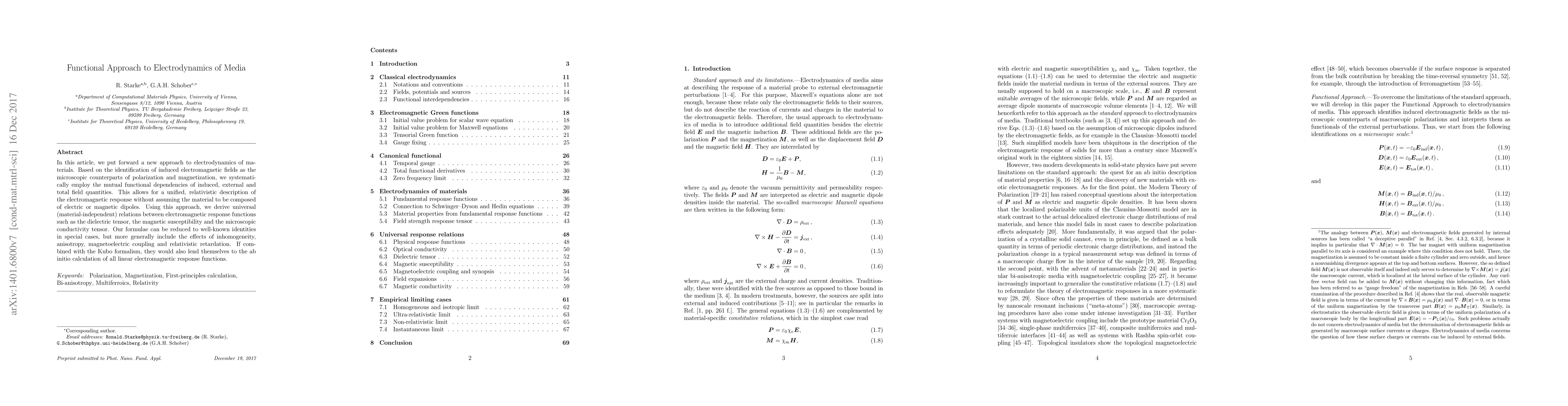 This paper introduces a novel functional approach to electrodynamics that identifies induced electromagnetic fields with polarization and magnetization, offering a unified relativistic description of material electromagnetic responses. It derives universal relations for response functions, including effects like inhomogeneity and anisotropy, and can be extended to ab initio calculations using the Kubo formalism.
