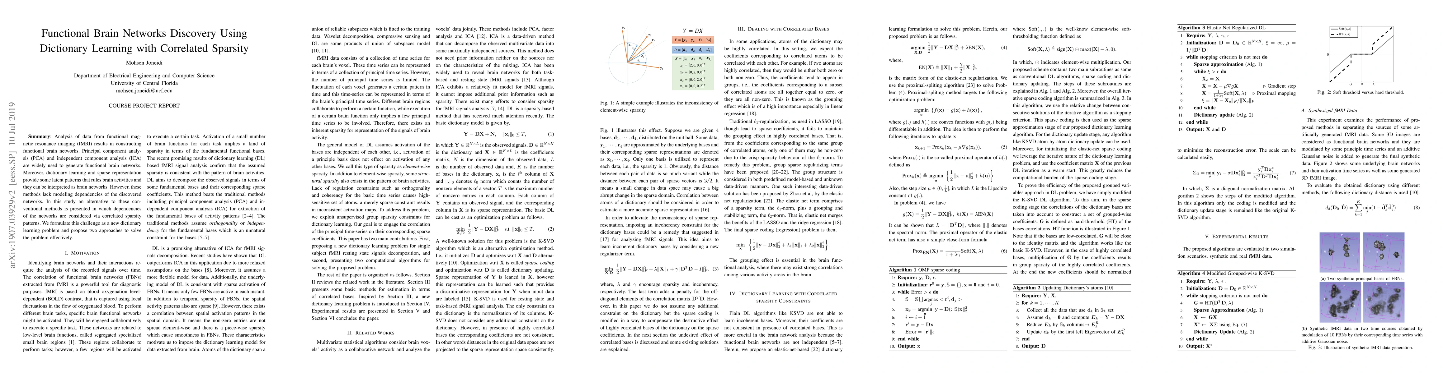 This paper proposes a novel dictionary learning method with correlated sparsity to construct functional brain networks from fMRI data, addressing the limitations of PCA, ICA, and sparse representation methods by modeling dependencies within the networks. Two approaches are introduced to effectively solve the formulated dictionary learning problem.