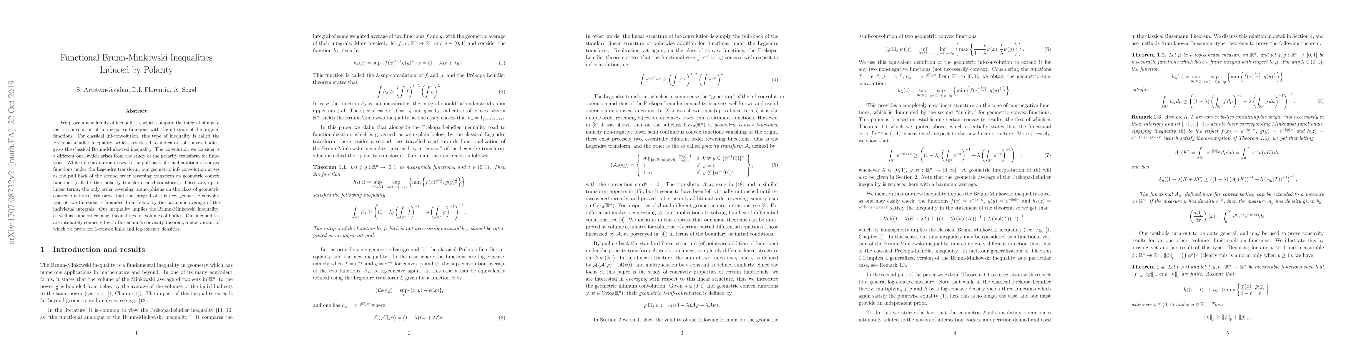 We prove a new family of inequalities, which compare the integral of a geometric convolution of non-negative functions with the integrals of the original functions. For classical inf-convolution, this type of inequality is called the Pr\'{e}kopa-Leindler inequality, which, restricted to indicators of convex bodies, gives the classical Brunn-Minkowski inequality. The convolution we consider is a different one, which arises from the study of the polarity transform for functions. While inf-convolution arises as the pull back of usual addition of convex functions under the Legendre transform, our geometric inf-convolution arises as the pull back of the second order reversing transform on geometric convex functions (called either polarity transform or $A$-transform). These are, up to linear terms, the only order reversing isomorphisms on the class of geometric convex functions. We prove that the integral of this new geometric convolution of two functions is bounded from below by the harmonic average of the individual integrals. Our inequality implies the Brunn-Minkowski inequality, as well as some other, new, inequalities for volumes of bodies. Our inequalities are intimately connected with Busemann's convexity theorem, a new variant of which we prove for 1-convex hulls and log-concave densities.