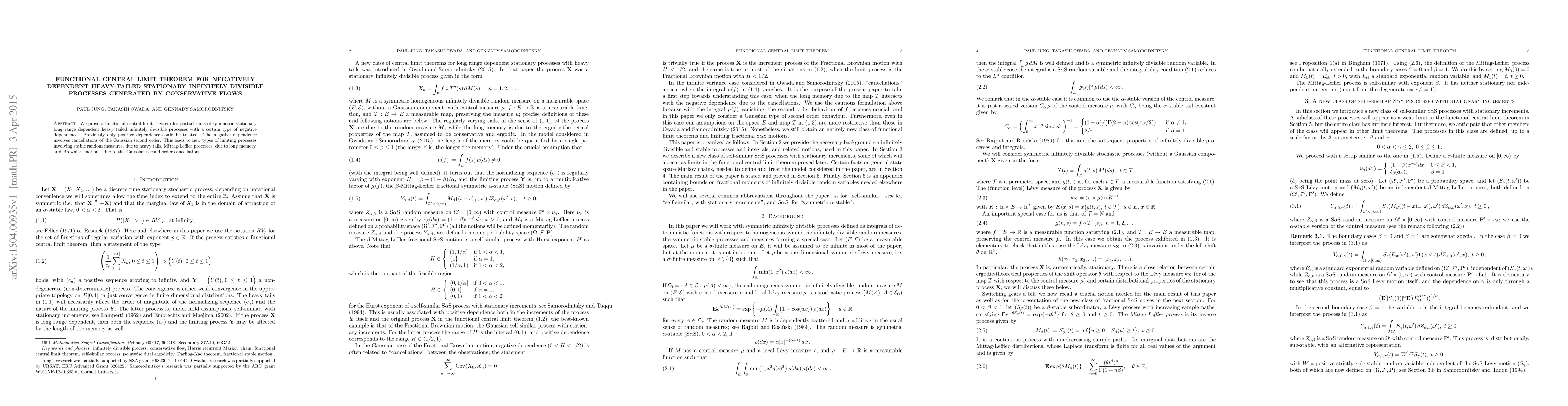 We prove a functional central limit theorem for partial sums of symmetric stationary long range dependent heavy tailed infinitely divisible processes with a certain type of negative dependence. Previously only positive dependence could be treated. The negative dependence involves cancellations of the Gaussian second order. This leads to new types of limiting processes involving stable random measures, due to heavy tails, Mittag-Leffler processes, due to long memory, and Brownian motions, due to the Gaussian second order cancellations.