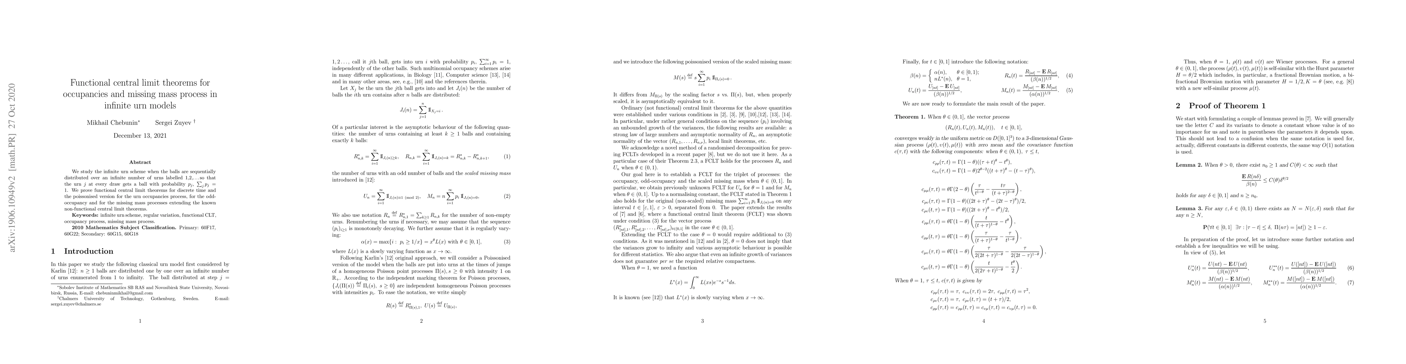This paper investigates infinite urn models where balls are sequentially assigned to an infinite number of urns based on given probabilities. The study proves functional central limit theorems for the occupancies and missing mass processes, extending previous non-functional results.