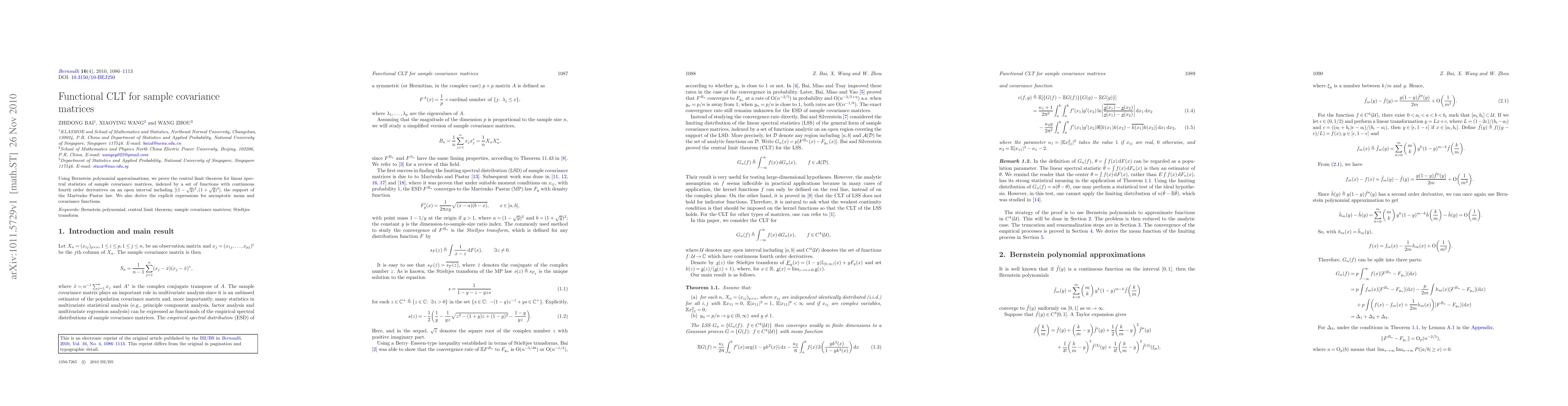 This paper proves the central limit theorem for linear spectral statistics of sample covariance matrices using Bernstein polynomial approximations, with explicit expressions for the asymptotic mean and covariance functions. The focus is on functions with continuous fourth order derivatives within the Marčenko-Pastur law support.
