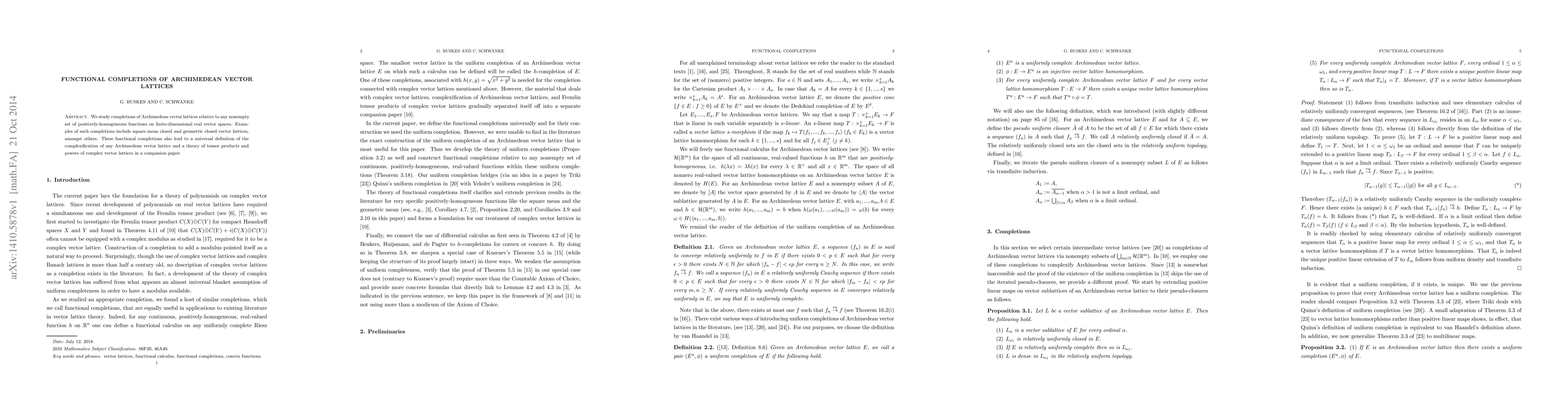 We study completions of Archimedean vector lattices relative to any nonempty set of positively-homogeneous functions on finite-dimensional real vector spaces. Examples of such completions include square mean closed and geometric closed vector lattices, amongst others. These functional completions also lead to a universal definition of the complexification of any Archimedean vector lattice and a theory of tensor products and powers of complex vector lattices in a companion paper.