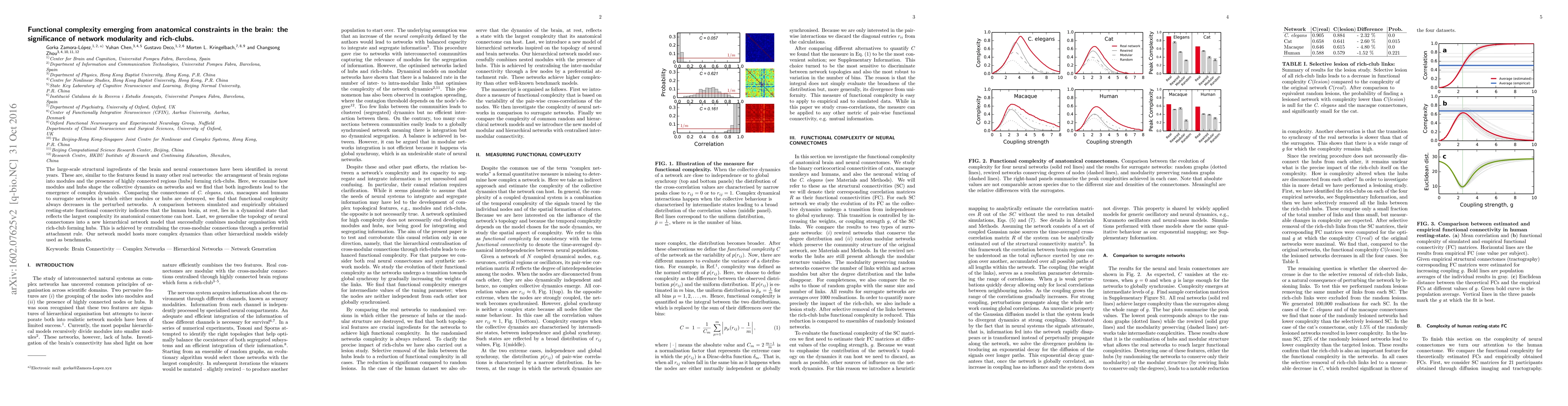 This paper investigates how anatomical constraints in the brain, specifically network modularity and rich-clubs, contribute to functional complexity. It finds that both elements are crucial for the emergence of complex dynamics, as evidenced by comparing real brain connectomes to surrogate networks and showing decreased complexity in the latter.