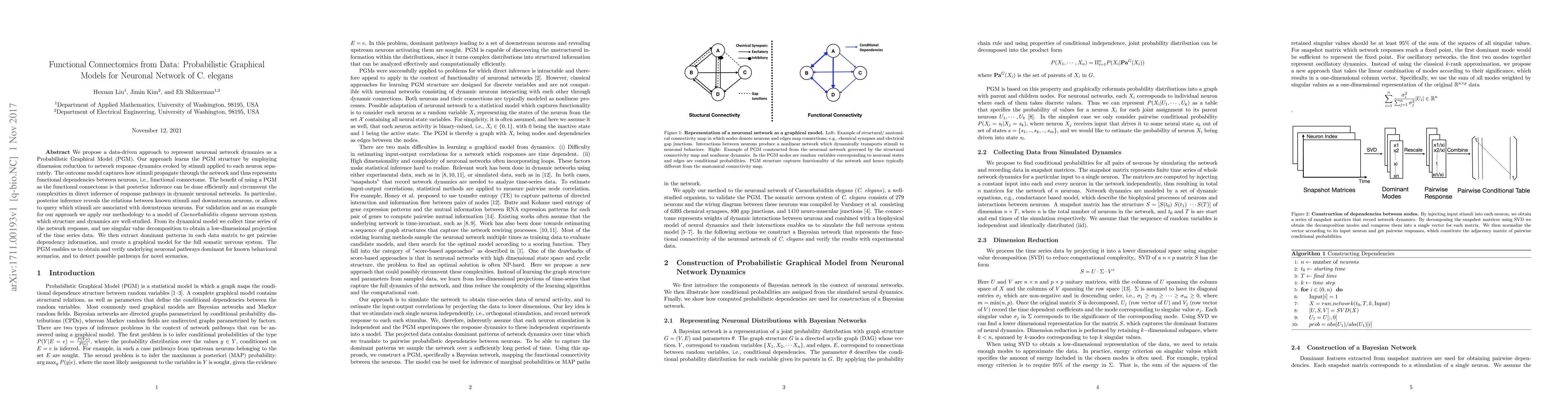 This paper proposes a probabilistic graphical model to represent C. elegans neuronal network dynamics, enabling efficient inference of functional dependencies between neurons and identifying underlying pathways for known and novel behavioral scenarios.