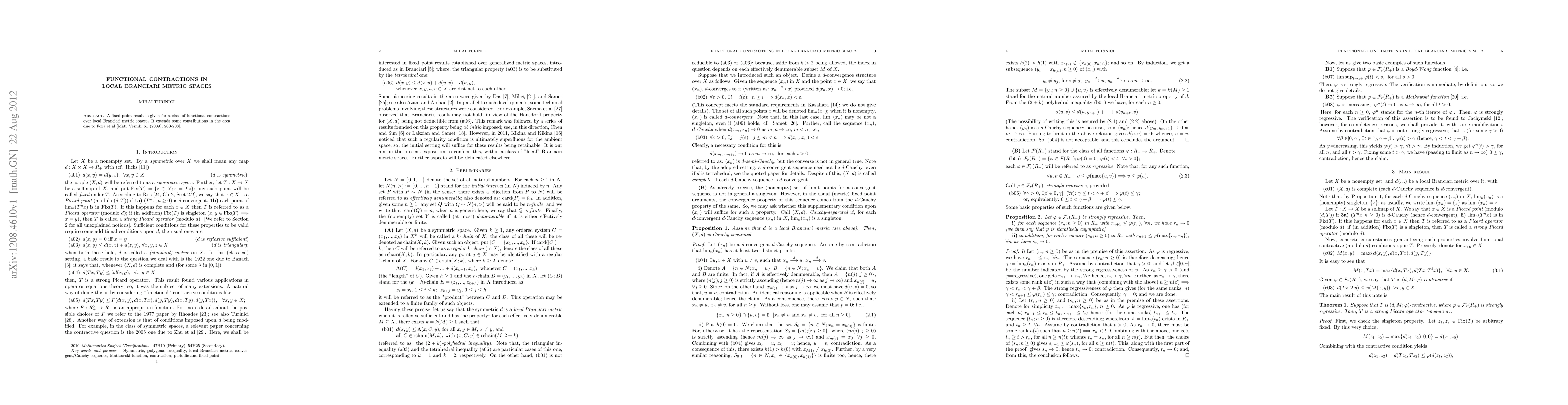 A fixed point result is given for a class of functional contractions over local Branciari metric spaces. It extends some contributions in the area due to Fora et al [Mat. Vesnik, 61 (2009), 203-208].