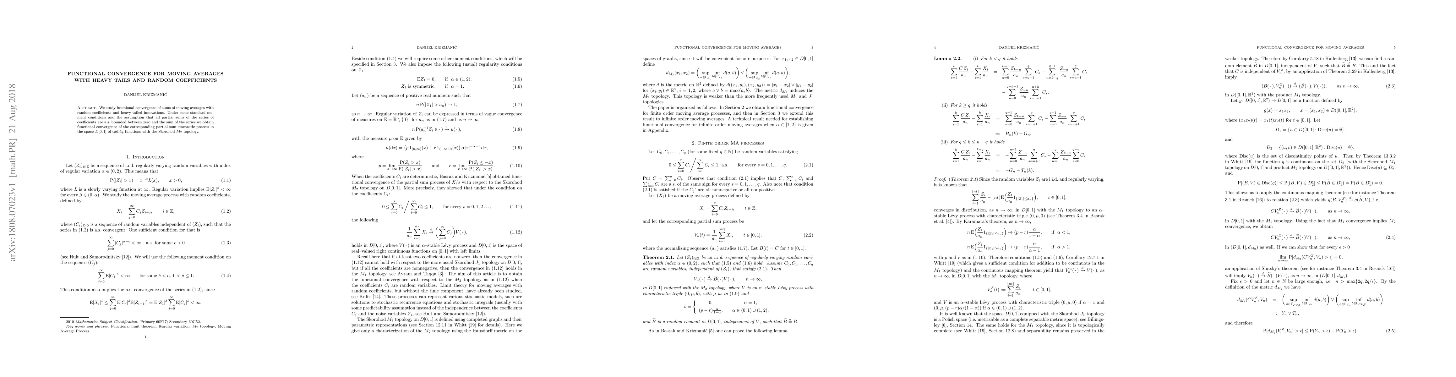 This paper investigates the functional convergence of moving averages with random coefficients and heavy-tailed innovations, demonstrating that under certain moment conditions and boundedness assumptions, the partial sum stochastic process converges in the Skorohod $M_{2}$ topology to a càdlàg function in $D[0,1]$.