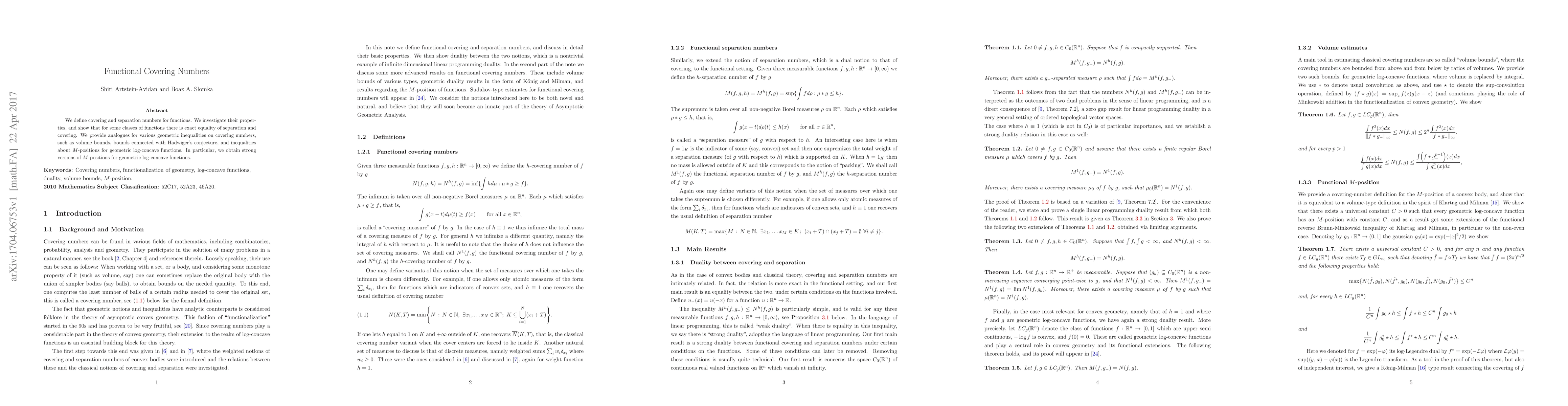 This paper defines covering and separation numbers for functions, demonstrating exact equality for certain classes and providing geometric inequality analogues, including volume bounds and results related to Hadwiger's conjecture, with a focus on strong M-positions for geometric log-concave functions.